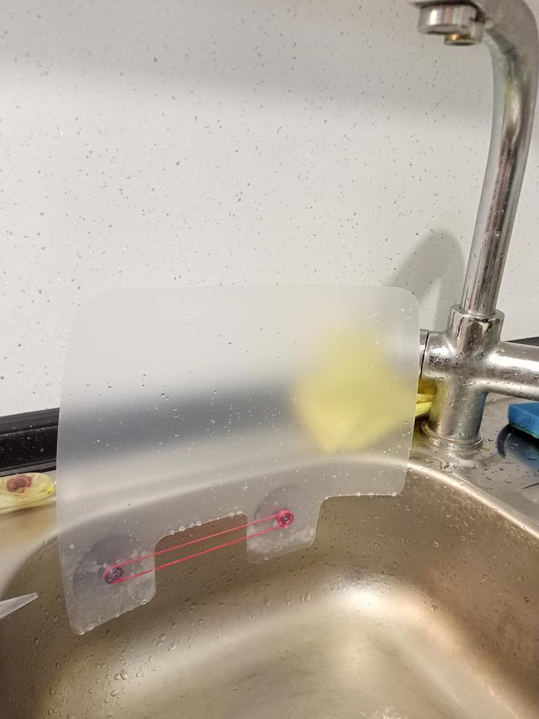 Wonderful idea!!!! Got rid of splashes on the wall and puddles on the countertop behind the tap! Thanks a lot!!!