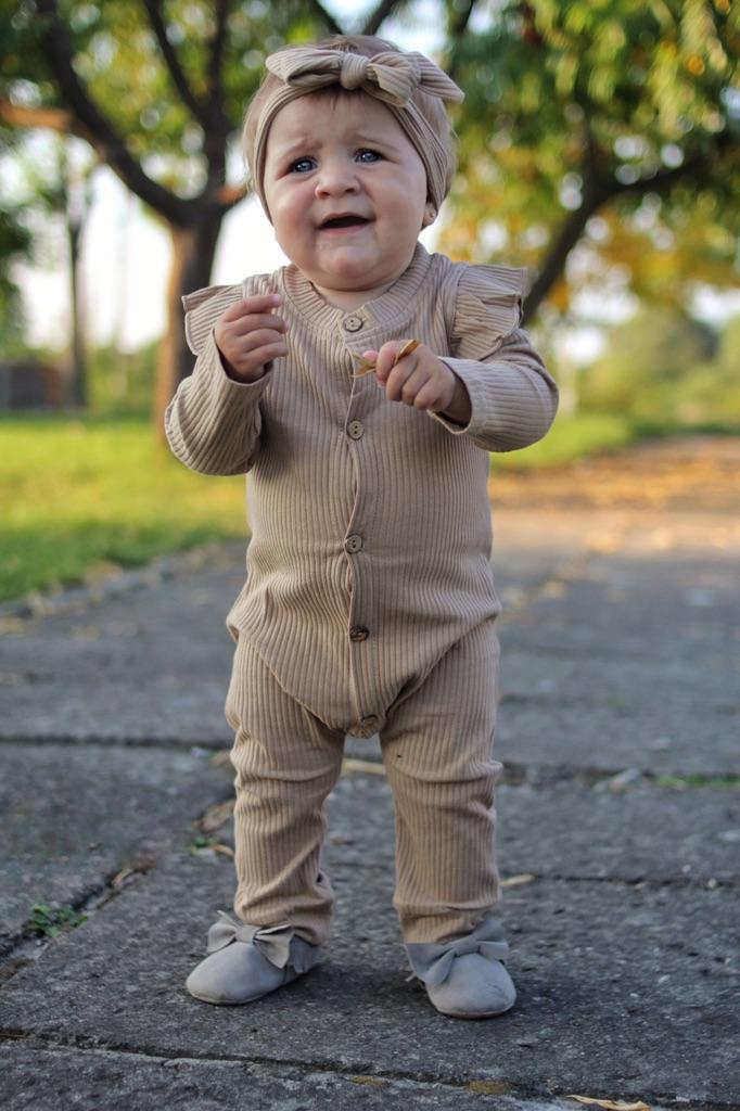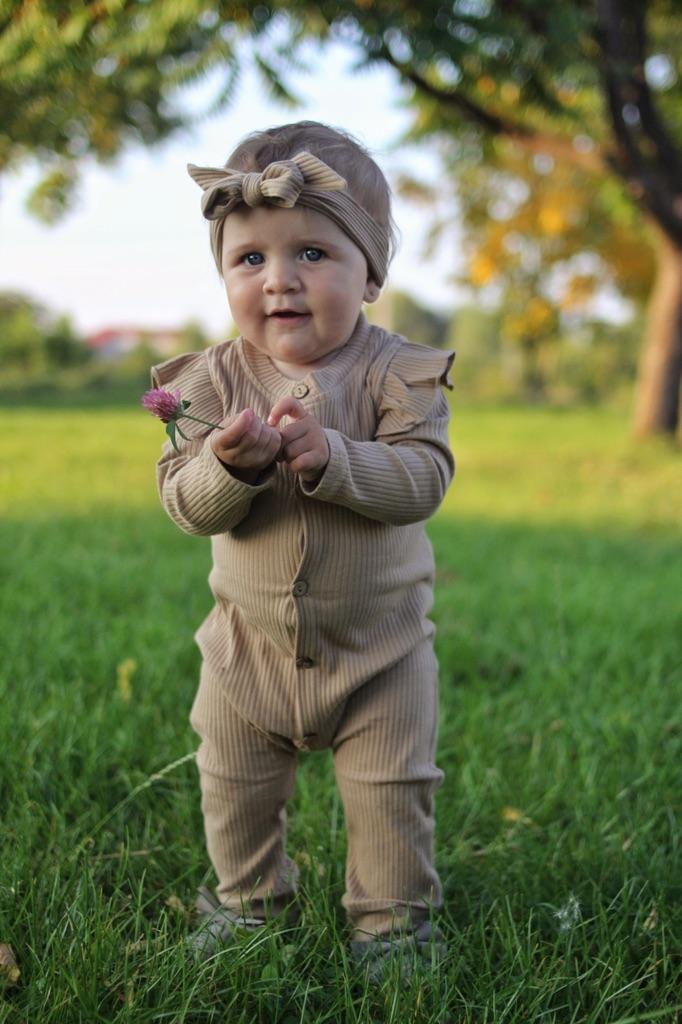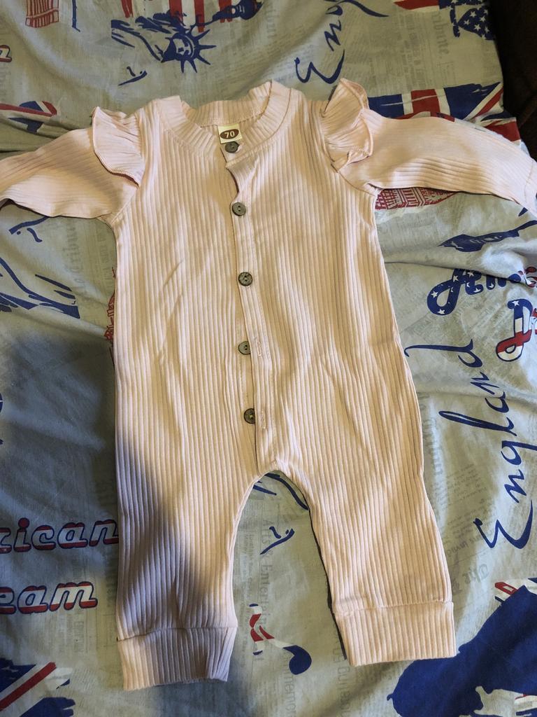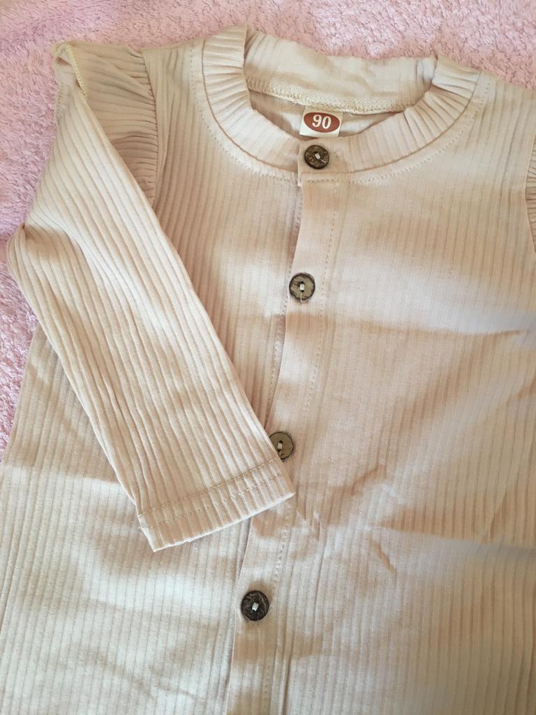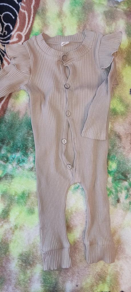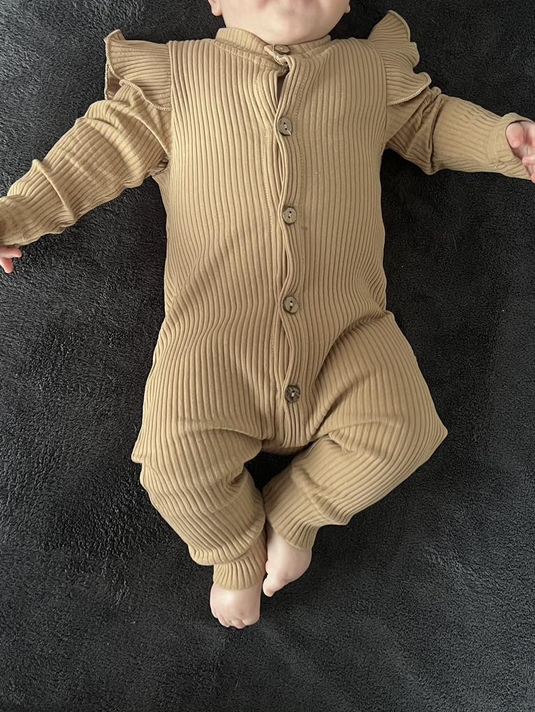 Cool romper. Ribbed material. The child is very comfortable in it. I am ordering a larger size for the second time. The smaller one was beige, worn for a long time, because they are stretchy. Thank you.