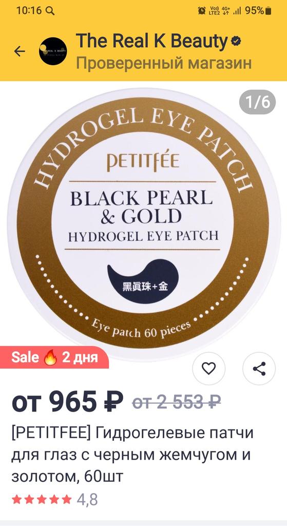 Petitfee Black Pearl & Gold Hydrogel Eye Patch (3 Options)