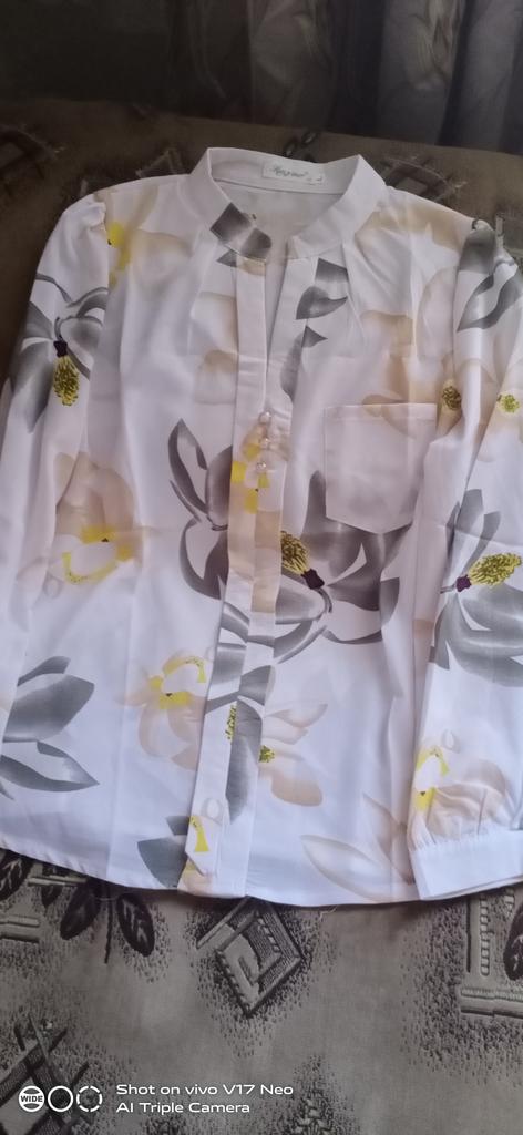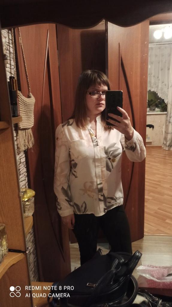 I recommend the seller, a chiffon blouse, according to the photo, for a breast volume of 94, took the size XXL. This size is perfect. The sleeves are long, not quarter. Fast delivery, ordered on March 13, 2021, and on March 30 the postman brought home.