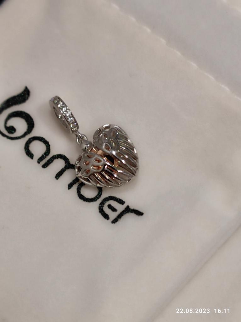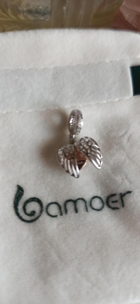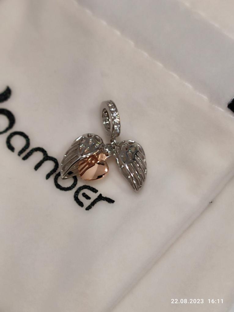 BAMOER Guardian Wings Family Pendant Real 925 Sterling Silver Charm for Women Silver Bracelet Heart