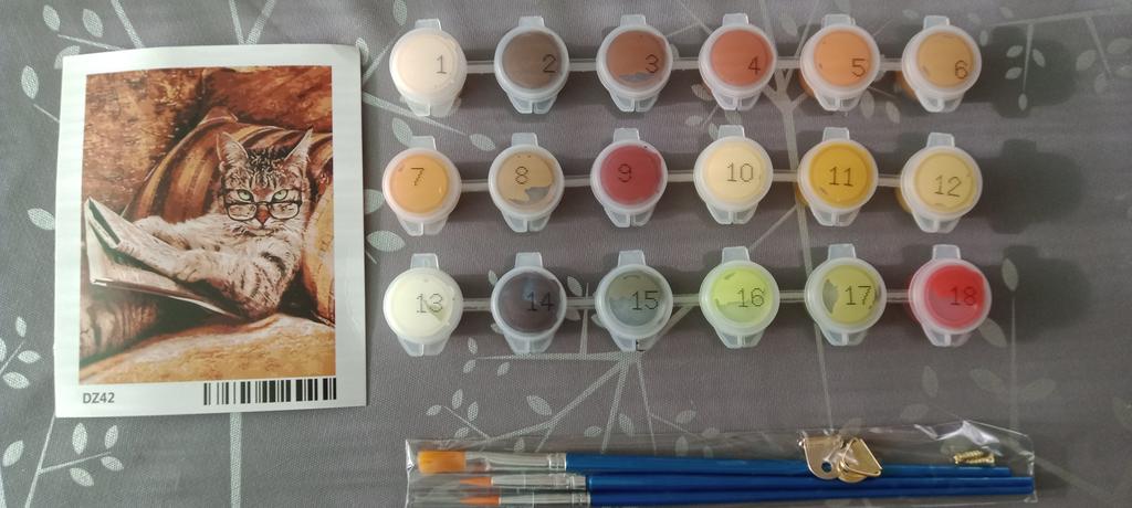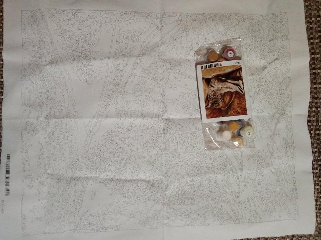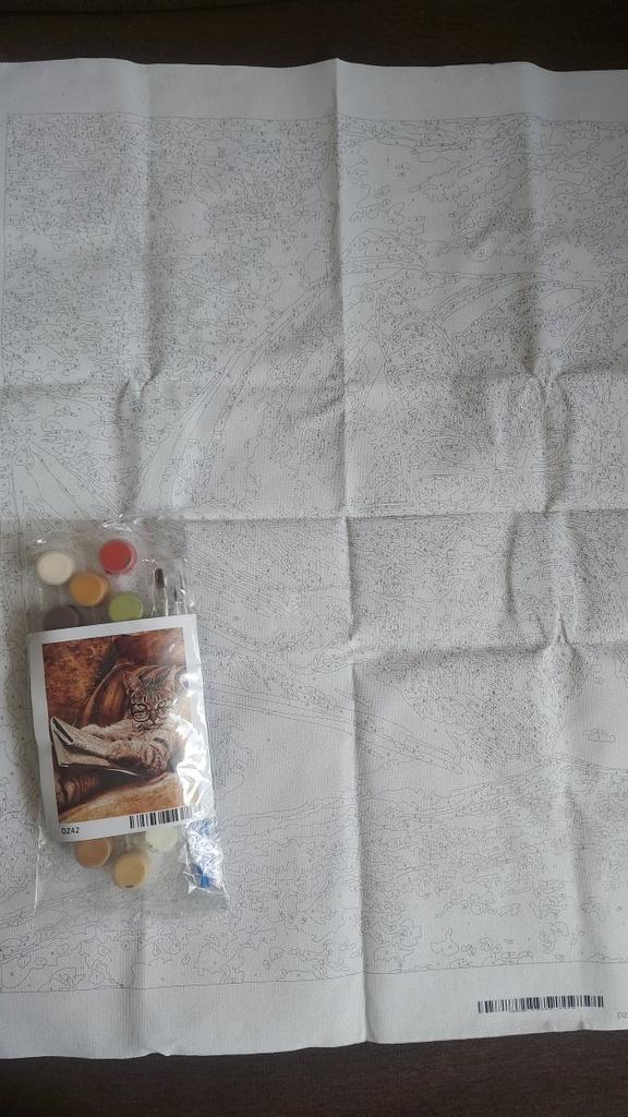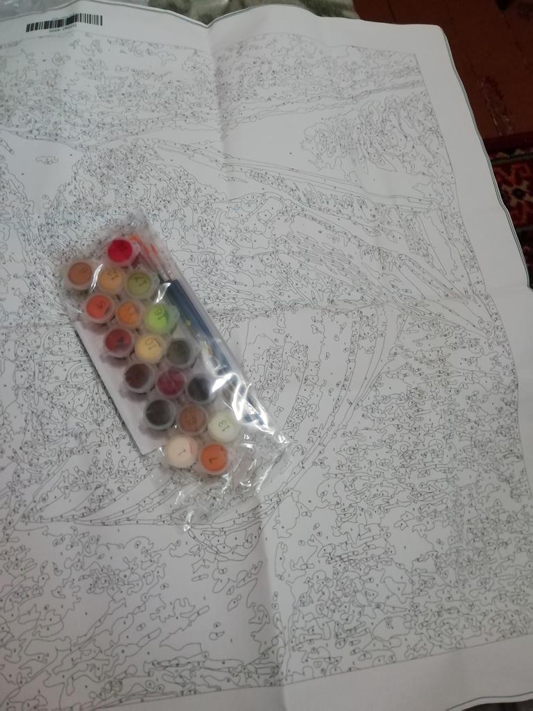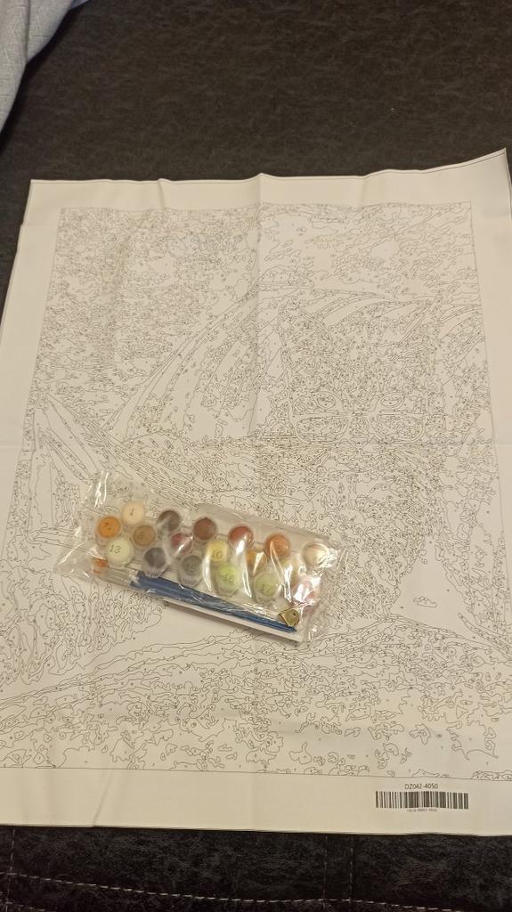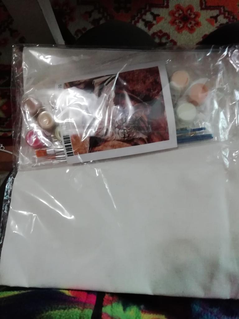 Very nice set, everything included (no frame), paint, three brushes, small hangers with screws and of course the printed canvas. The motif caught my eye immediately because I find it very beautiful. I haven't started painting yet, so I can't comment on the colors etc. When the picture is ready, which may take a while, I'll post the picture here.
