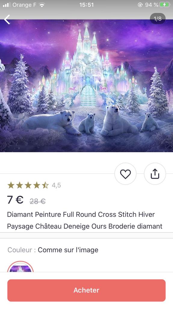 Diamond Painting Full Round Cross Stitch Winter Landscape Snow Castle Bear Diamond Embroidery