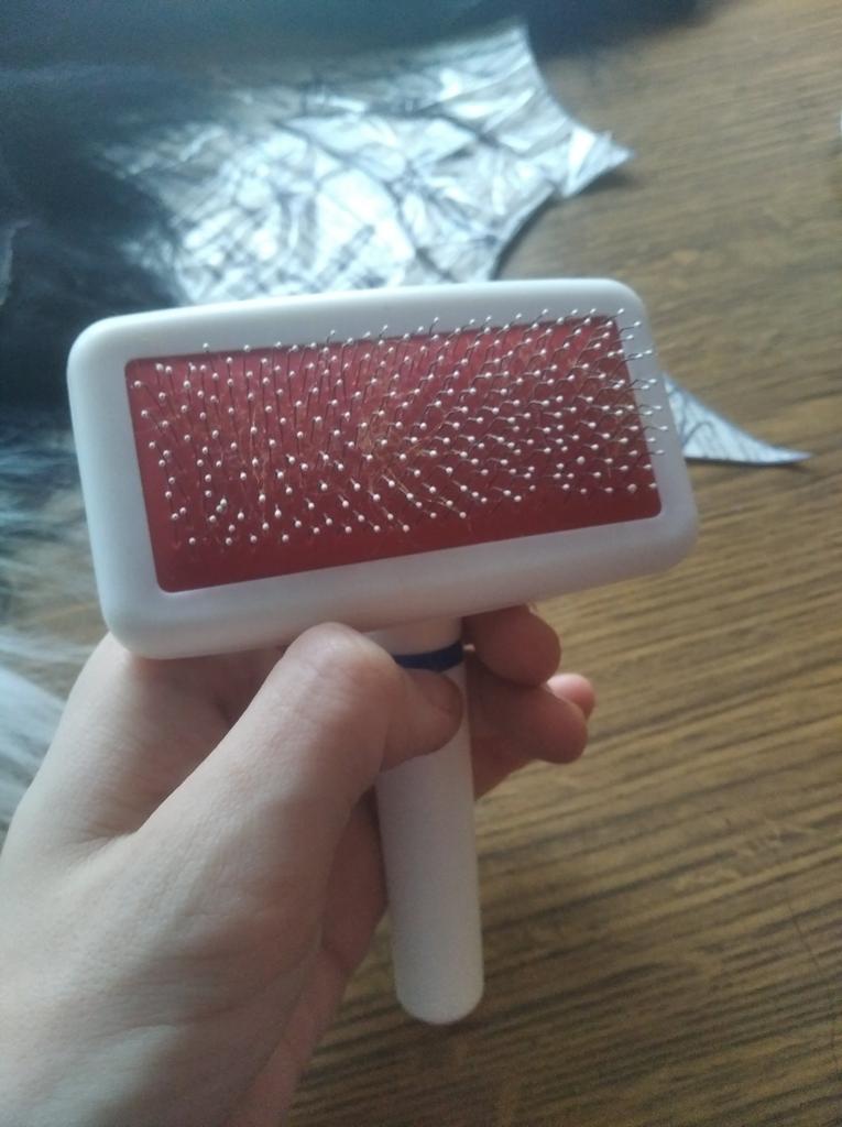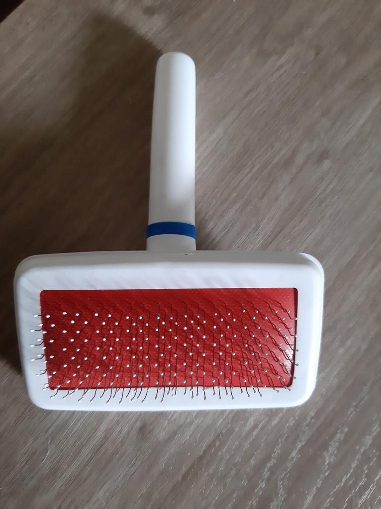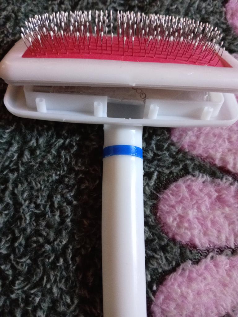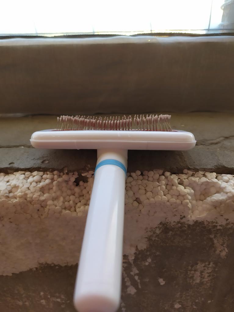 Small handle, uncomfortable to hold. When combing the animal, it flies off, as it is not secured with anything. You need to glue it or stick another handle on it. I didn't like it.