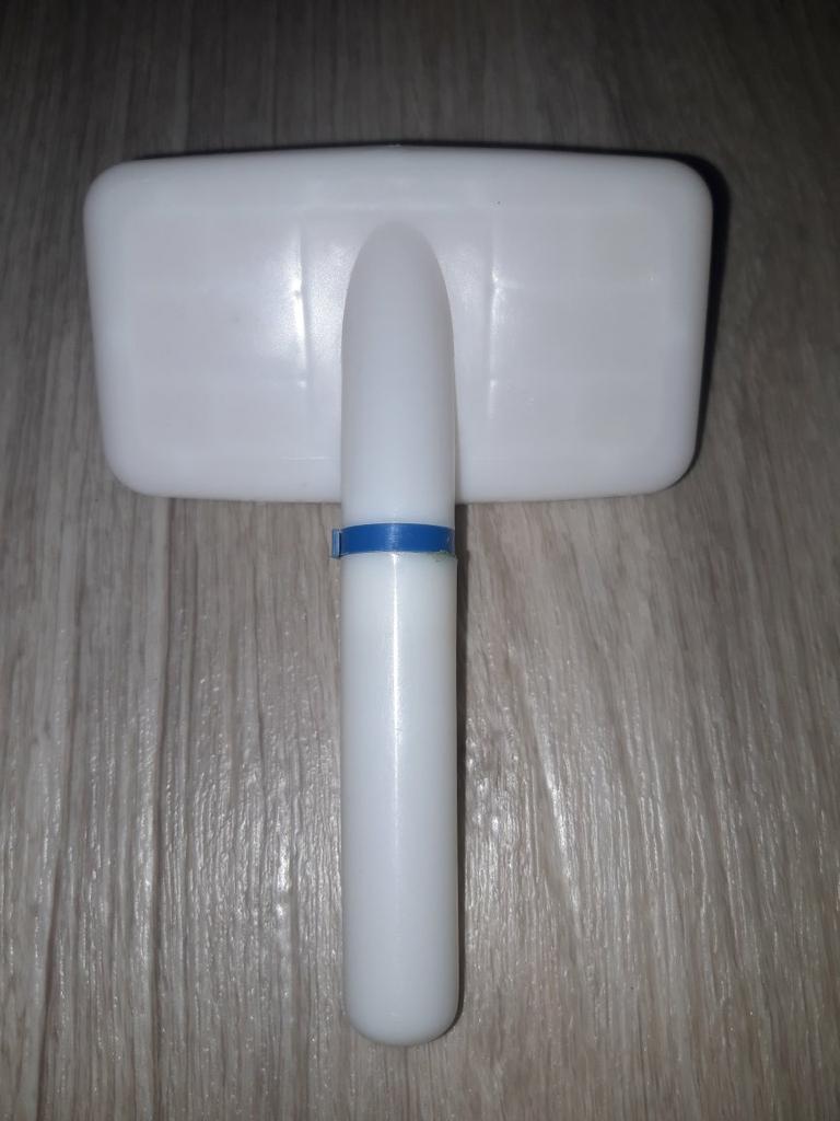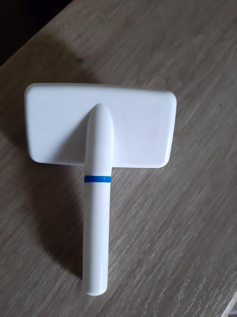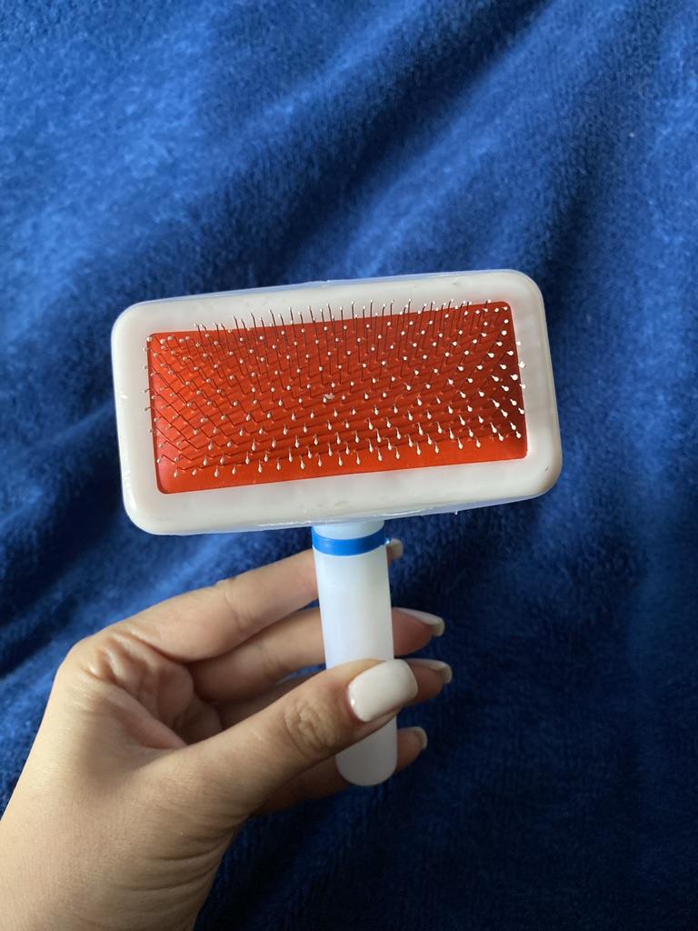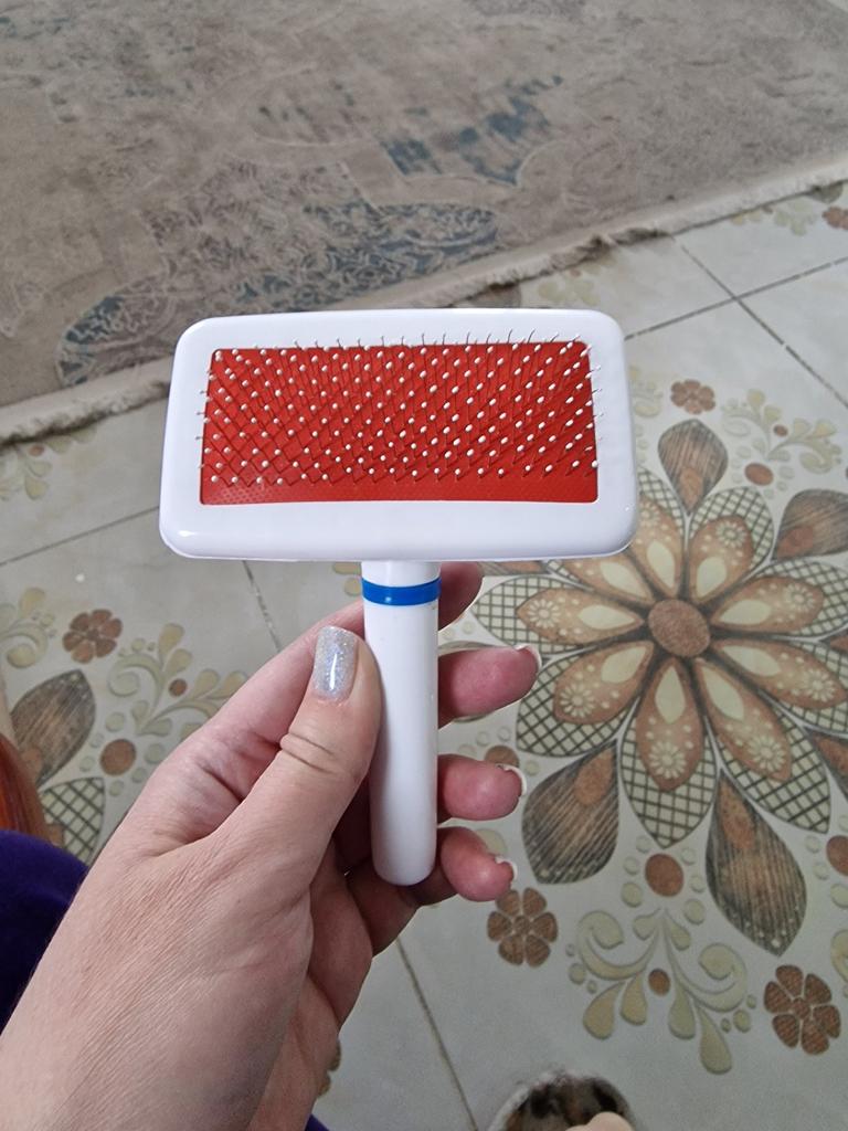 Small handle, uncomfortable to hold. When combing the animal, it flies off, as it is not secured with anything. You need to glue it or stick another handle on it. I didn't like it.