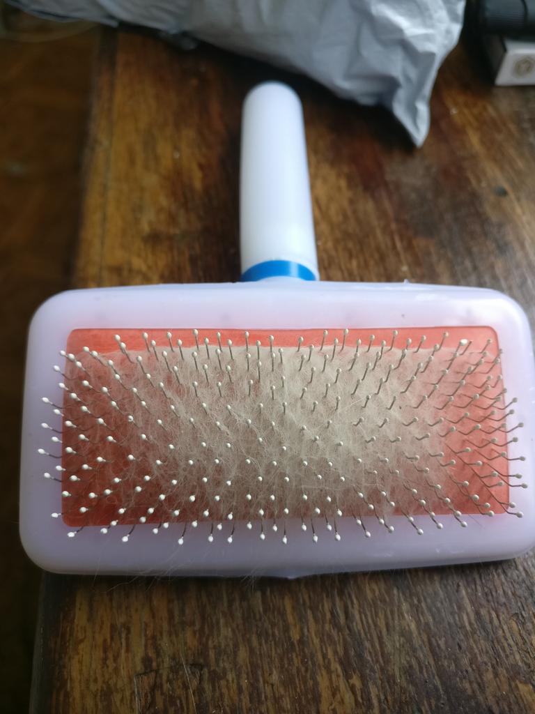 The teeth are very thin, brushes are not suitable for medium and large dogs, it is more suitable for cats, the goods arrived damaged, the handle was broken, made of plastic, the goods are not of high quality, I do not recommend taking