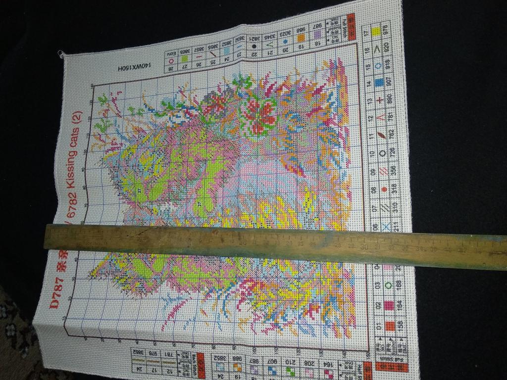 DIY Stamped Cross Stitch Starter Kit Pre Printed Kissing Cats 11CT