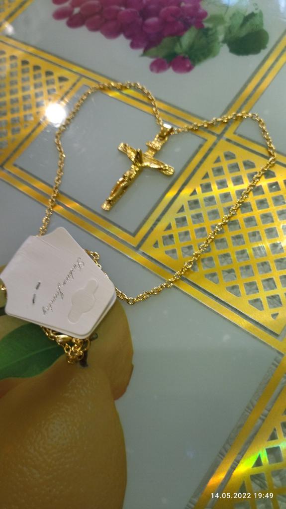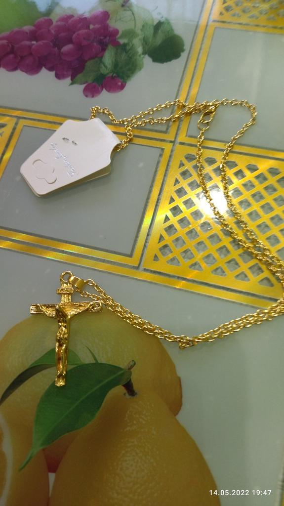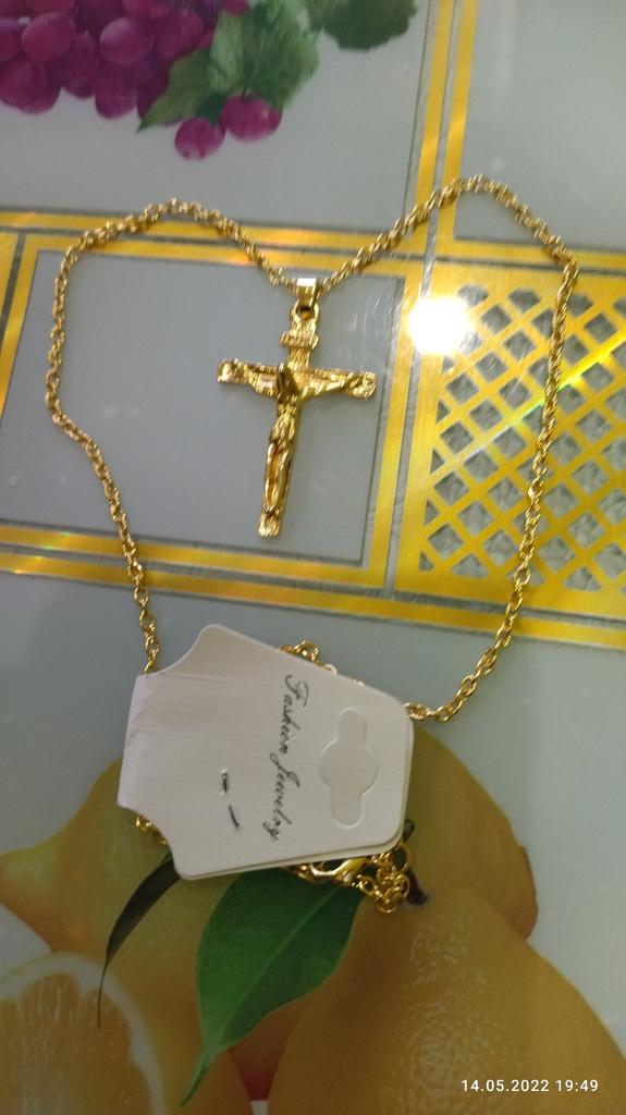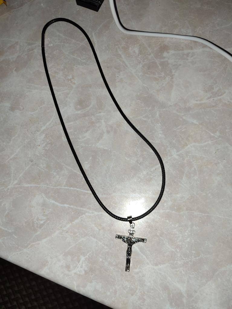 A good cross, a long chain - you can wear it over your head. Thank you!