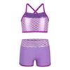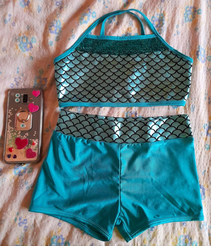 Kids Girls Sequins Mermaid Tank Top with Shorts Dance Outfit Gymnastics Dancing Costume Swimwear