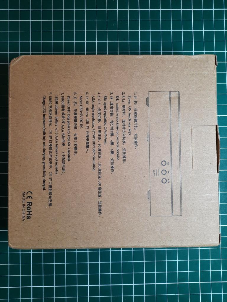 Rotating stand for product video. The package arrived on time and was well and safely packed. There was no damage during transport. The package includes the stand itself and a USB cable for charging. The stand can be used by connecting to the electrical network via USB, or using batteries (18650 lithium batteries or 3X AAA batteries) There are 3 buttons on the front that you control: - direction of rotation (right or left) - method of rotation (360 degree rotation or semicircle rotation back and forth) - rotation speed A great helper if you shoot product videos on YouTube or Reels on Instagram.