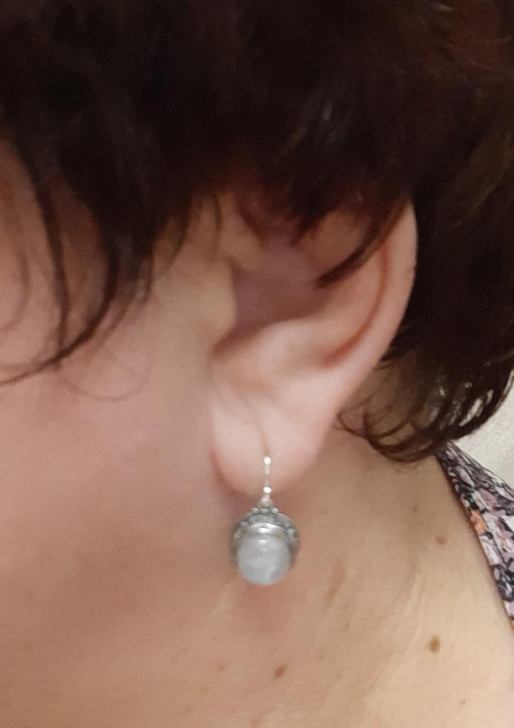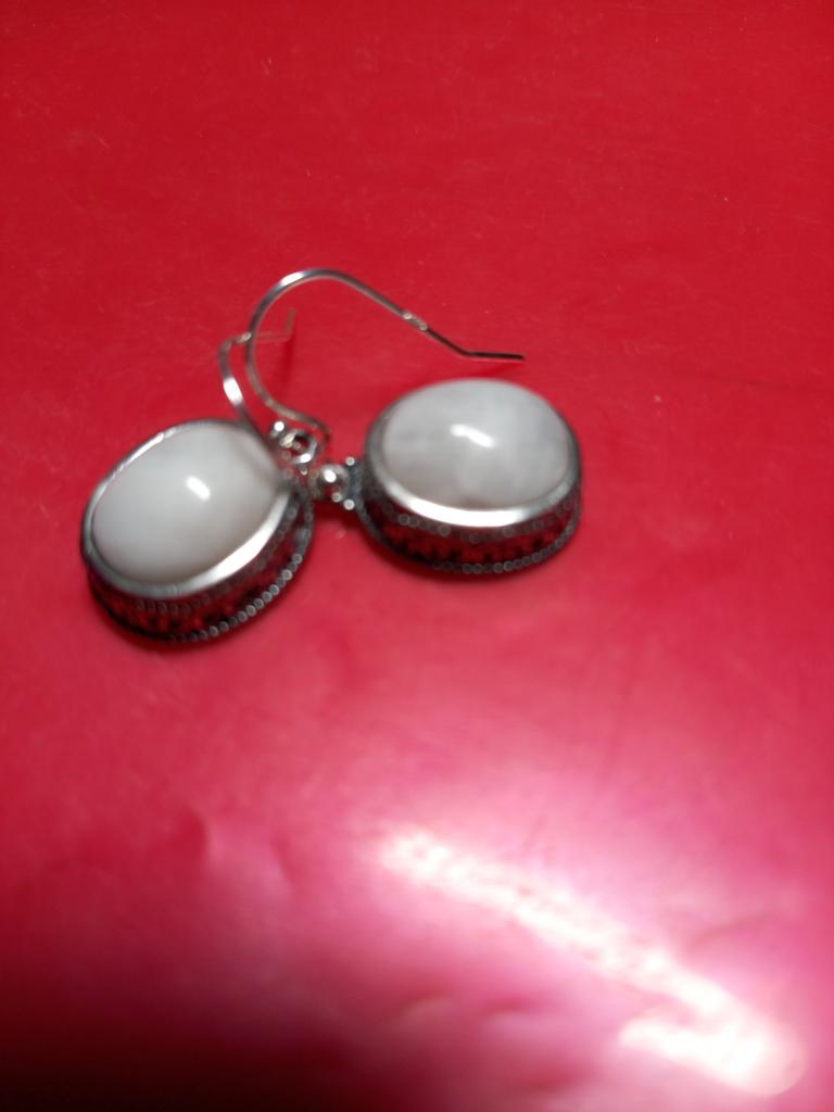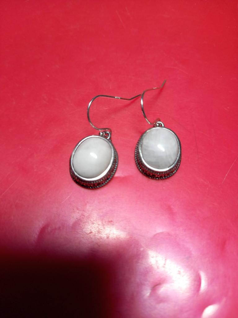 The pair I received have a much whiter stone than what can be seen in the photos, but overall a very pretty set of earrings for a reasonable price