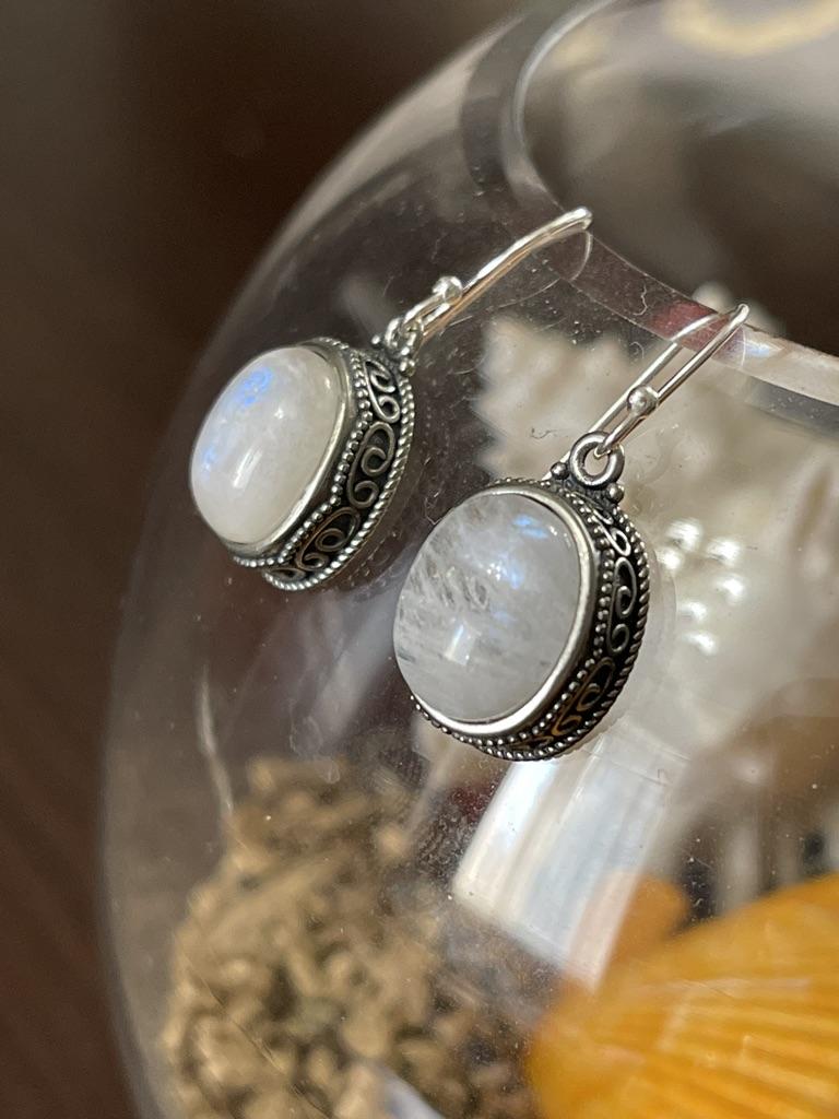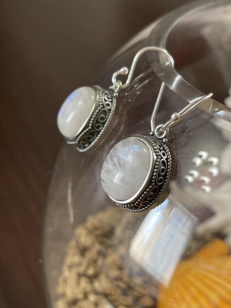 Vintage Oval Natural Moonstone Drop Earrings Women Girls Silver Plated Jewelry Party Birthday Gift
