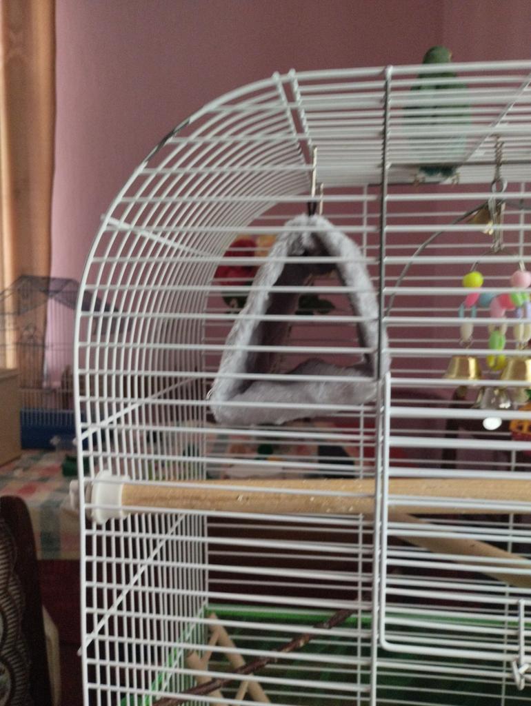 Corresponds to the description, attached to the cage, still not suitable for parrots. We will be glad if they like the hammock