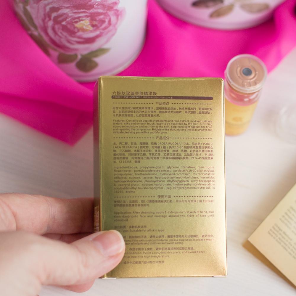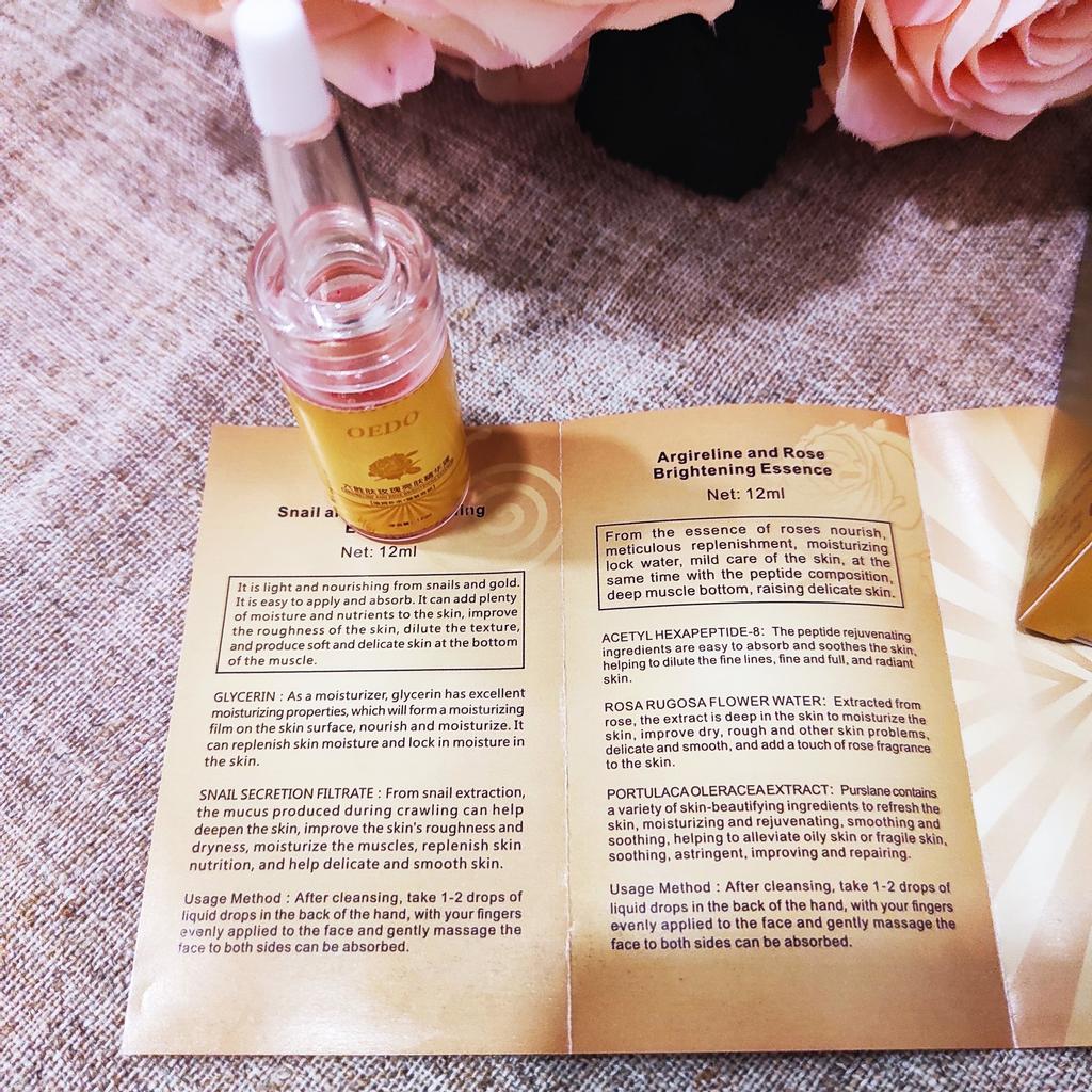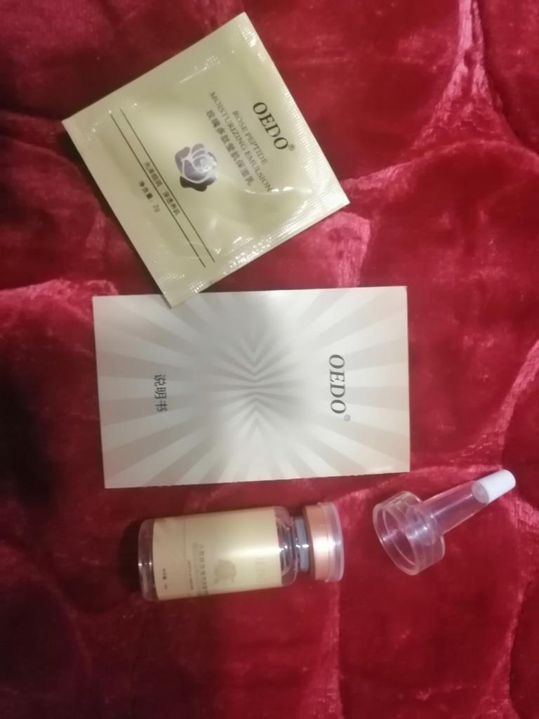 Rose Emulsion Serum Anti-aging Hi there The serum I bought for my wife has arrived.. Net Weight: 0.42oz / 12ml Ingredients: Alpha hydroxy acids; fragrance, parabens. Product feature: It is enriched with rose essential oil and its texture is light and delicate with a silky and moist touch feeling.. Easily penetrates to absorb and replenish moisture and nutrition for the skin, restoring firm smoothness to the skin, showing your youthful attractiveness.. Scope of Use: Various volumes. How to Use: 1. Apply 1-2 drops to the first hand net after cleaning. 2. Then rub it on the face and massage both sides of the face until absorbed. Have a nice day