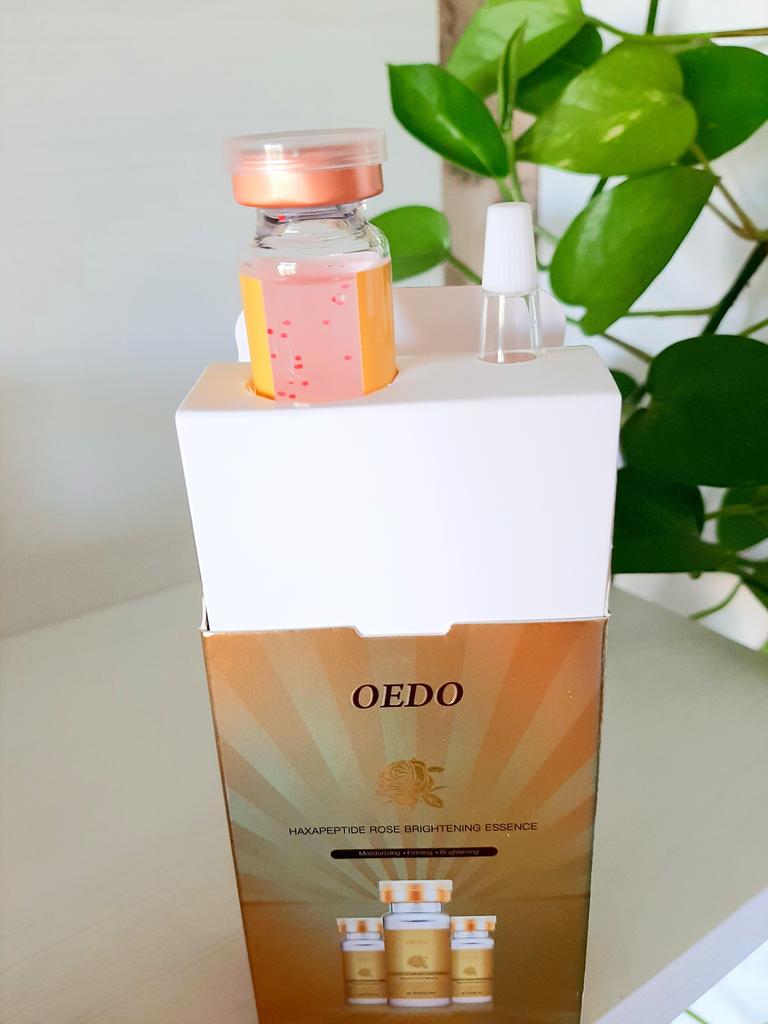 Argireline & Rose Essence - brand: ODEO 👵🏻🕦🕥🕤🕣👩🏻 This essence contains Argireline and Rose Essence Dermatologists say Argireline basically performs just like Botox 😲. And it's so effective, that dermatologists say it's the closest thing to Botox you can get. Argireline prevents the muscle movement that leads to wrinkle formation. Argireline also promotes collagen production and optimizes the function of collagen, which both fight fine lines and improve moisture levels in the skin This essence is for: 💮 Anti-aging 💮 Anti-wrinkles 💮 Whitening 💮 Moisturizing 💮 Brightening 💮 Smoothing 💮 Nourishing skin Net amount is 12 ml. Absorbed by my skin so easily and quickly. It doesn't give greasy feeling. It has so pleasant rose smell. There are pink particals. I love and totally recommend it 👍 ✏️ If you buy one after seeing my review, please leave a comment. I would love to know that my review is useful.