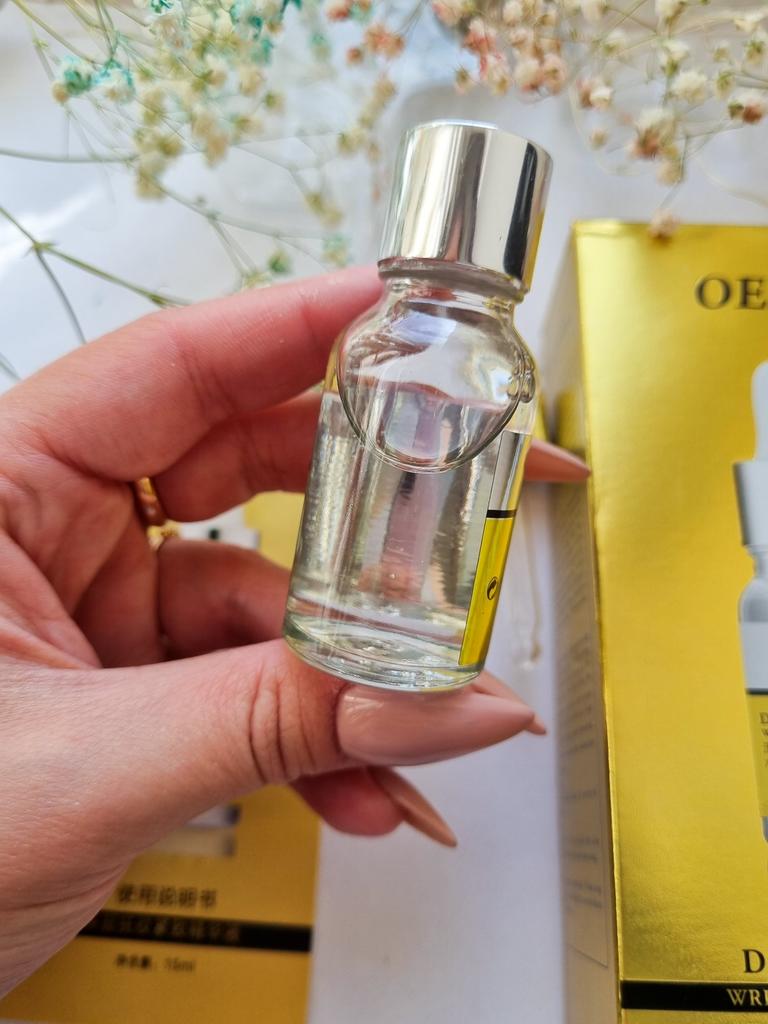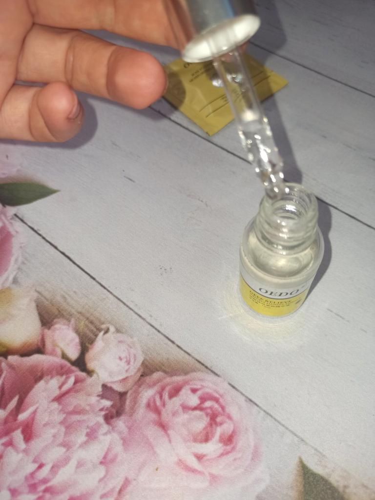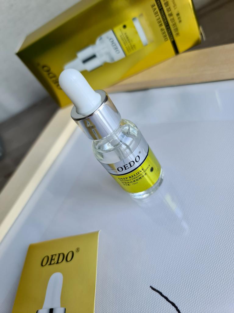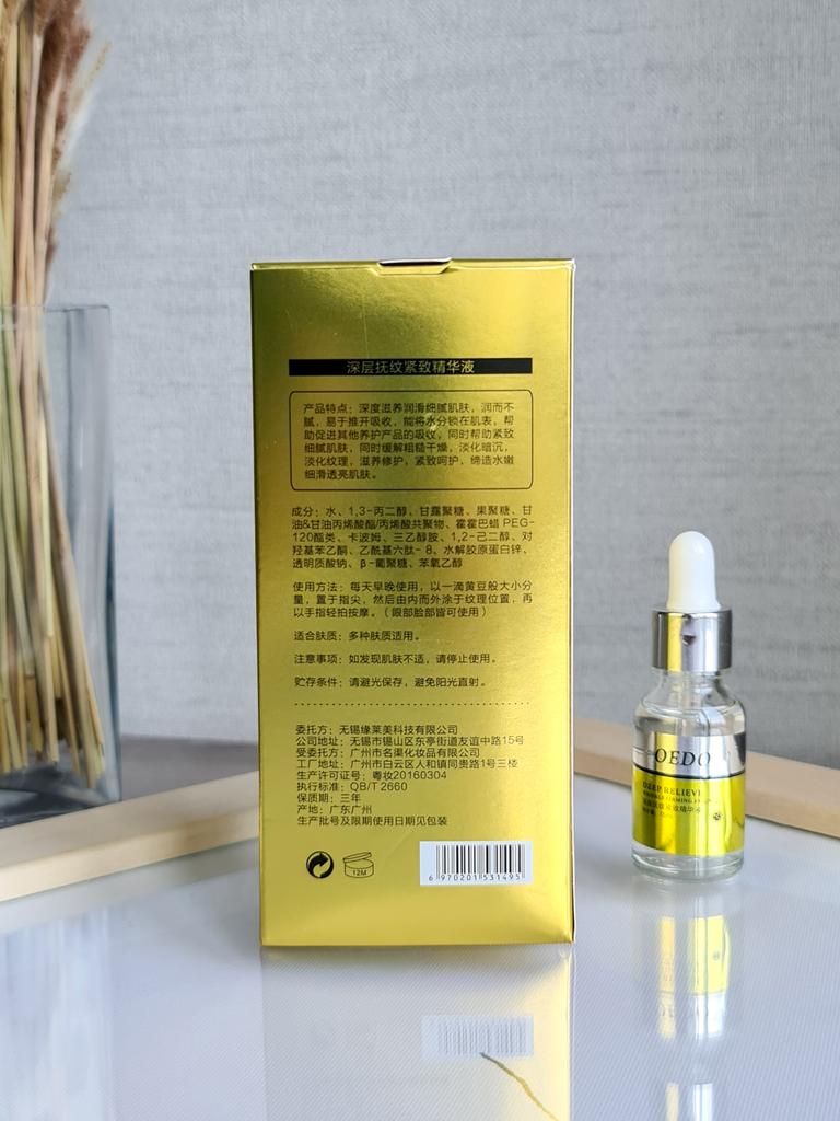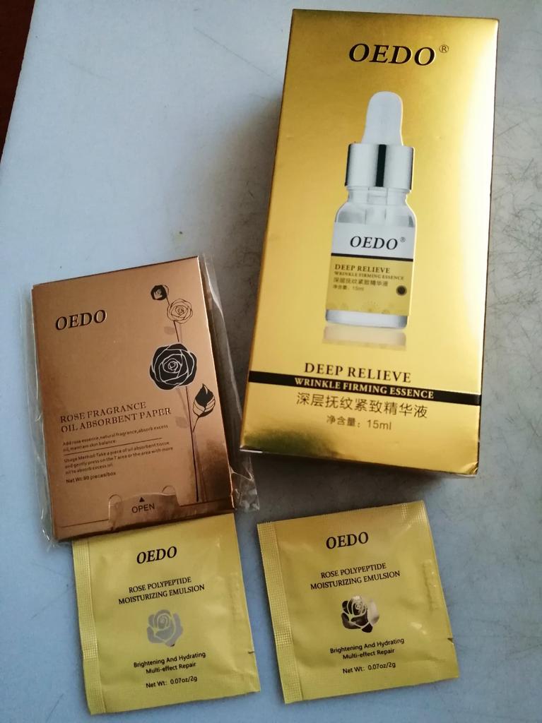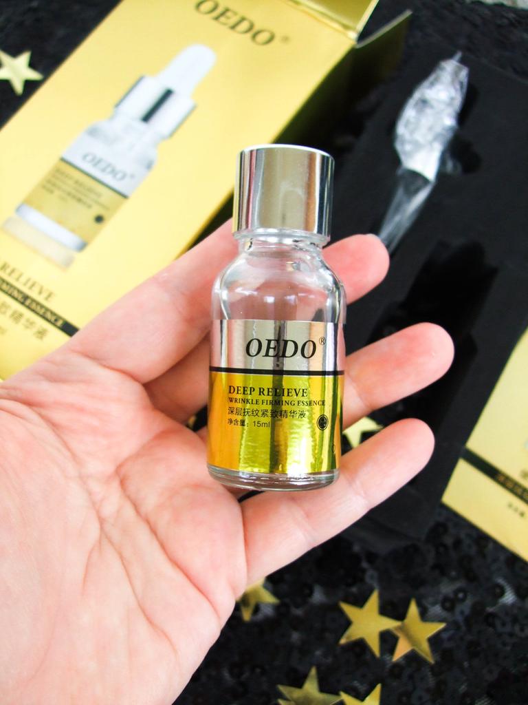 Hi friends 🌹 OEDO Deep relieve wrinkle firming essence. This essence contains amazing hydrating ingredients that lock in the moisture and repair your skin's barrier. This prevents water loss and improves your skin's texture and health. Deep relieve wrinkle firming essence is suitable for all skin types. How to use: Ideally, this would be twice a day and always after cleansing or exfoliating, your skin is still damp, press a few of drops into your face with the fingertips and massage the whole area. Net weight: 15mI Essence is non-sticky, it has no oder and can be absorbed quickly. Would recommend it.Great product.👍🏻