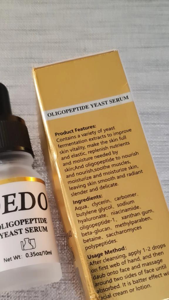 🛍️ Anti-aging yeast serum 🛍️ Rating: ⭐⭐⭐⭐⭐ 👈 The serum contains a variety of yeast fermentation extracts to improve the vitality of the facial skin which can help replenish nutrients and moisture needed by the skin. 👈 The actions of the serum according to the seller's information: • Anti-wrinkle •anti-aging •הלבנה •לחות • Make the skin full and elastic •הזנה 👈Instructions for use: after cleansing, apply 1-2 drops on the hand and massage around the 2 sides of the face until absorbed. 👈 The serum came to me in a small vial with a dropper attached to its cap for more convenient use, it was in a closed box and protected with plastic wrap. In addition, I also received a small sample with the serum. 👈 Serum content: 10 ml 👈 Many thanks to OEDO for sending me the package! 👈 The product reached me in about 51 days It is recommended to buy 🛍️ (the first product that appears under the post)