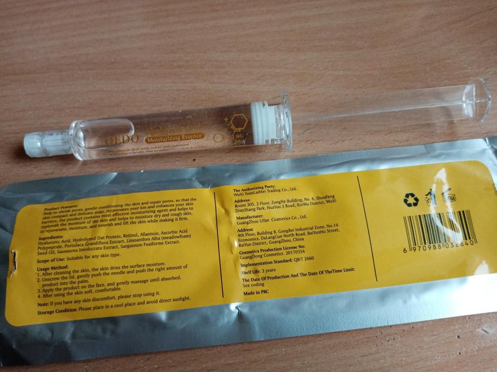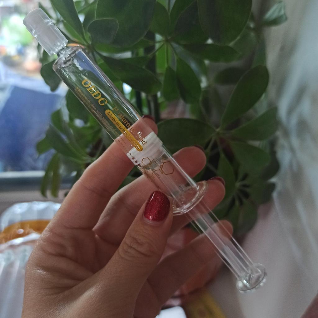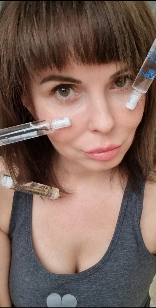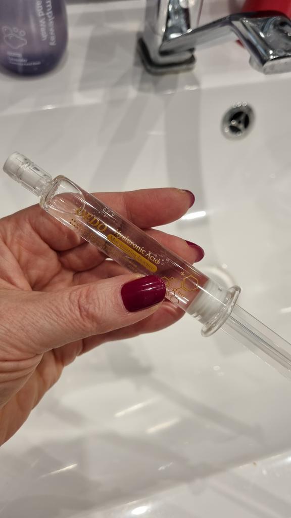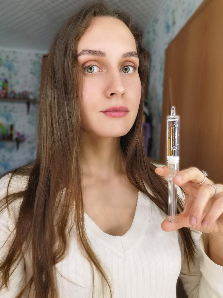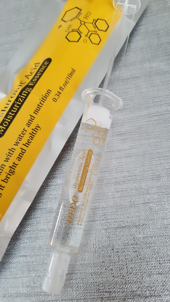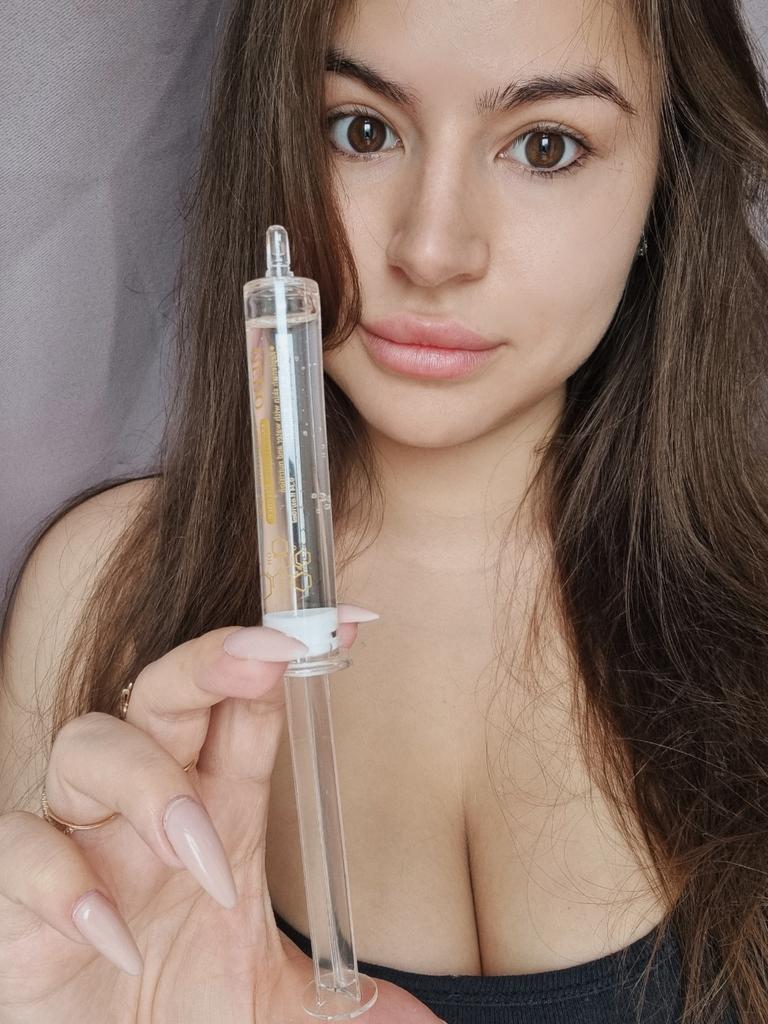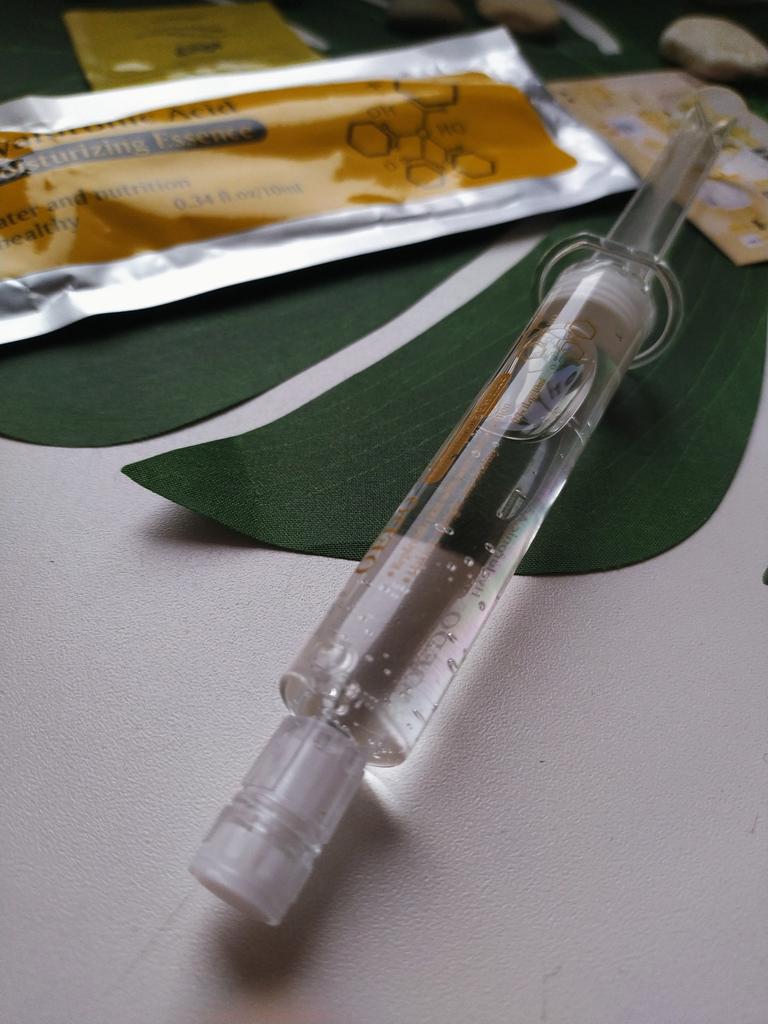 Anti-aging serum with hyaluronic acid The tube has an original design - in the form of a syringe. It is quite convenient to use. 😊 The serum is transparent, slightly watery and has almost no smell. It should be applied to cleansed face skin twice a day: in the morning and in the evening. Avoid the eyes and lips zones. It absorbs very well, doesn't leave a greasy trace and a film effect, does not tighten the skin. There are no unpleasant sensations after application. ❤ Apply your favorite nourishing cream after the procedure. I recommend it for purchase. 👍