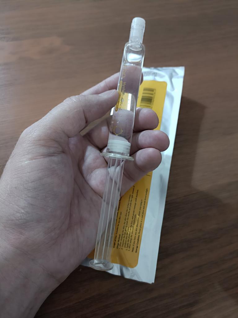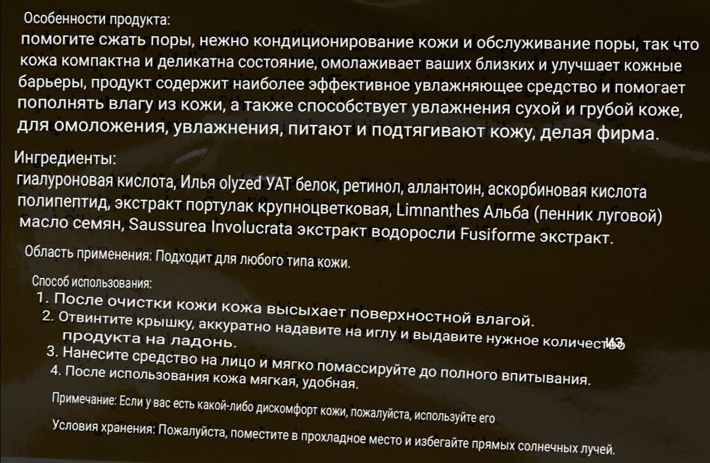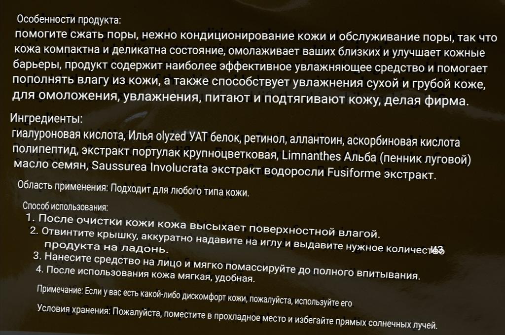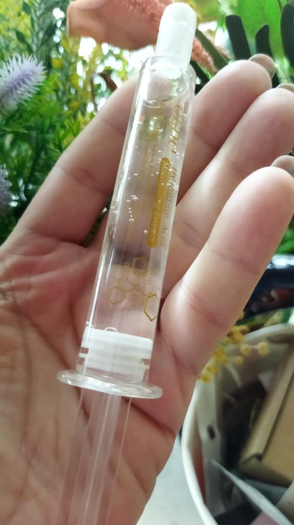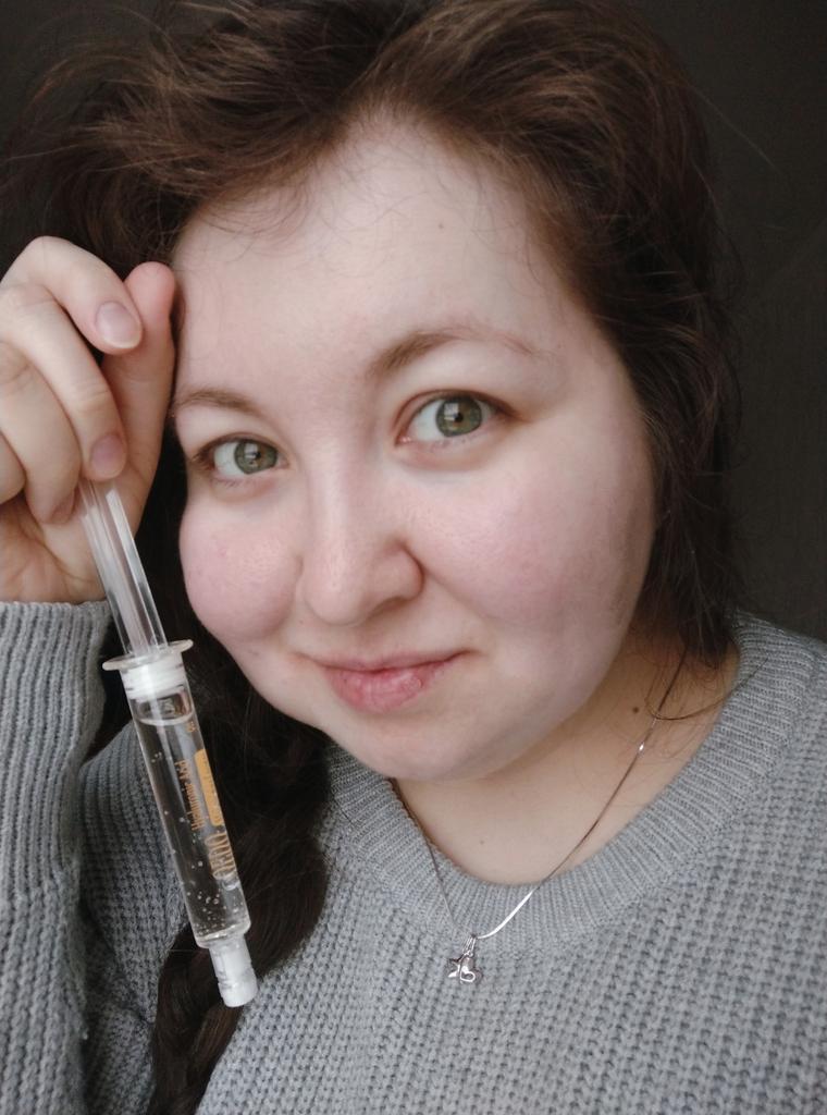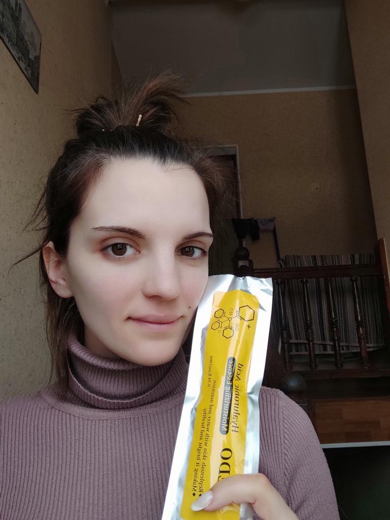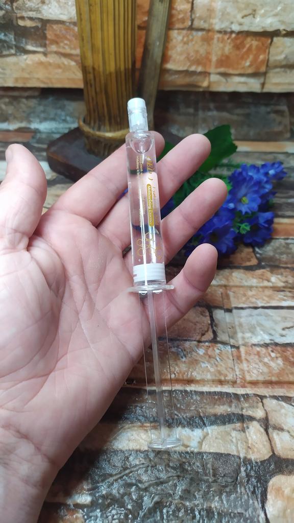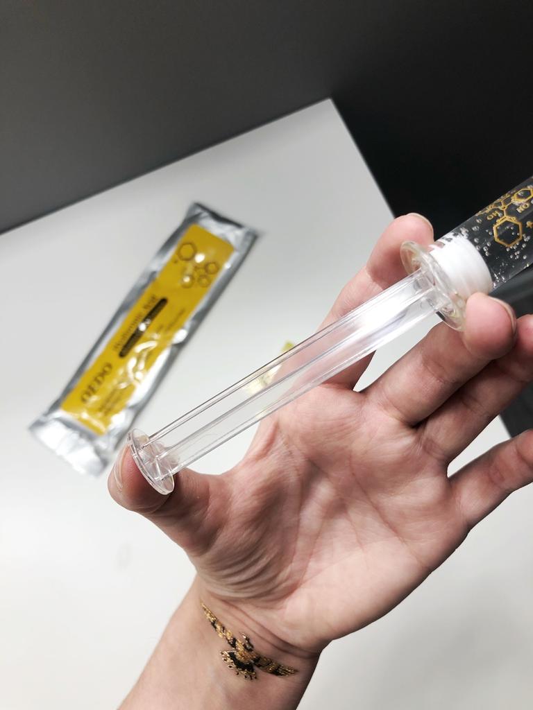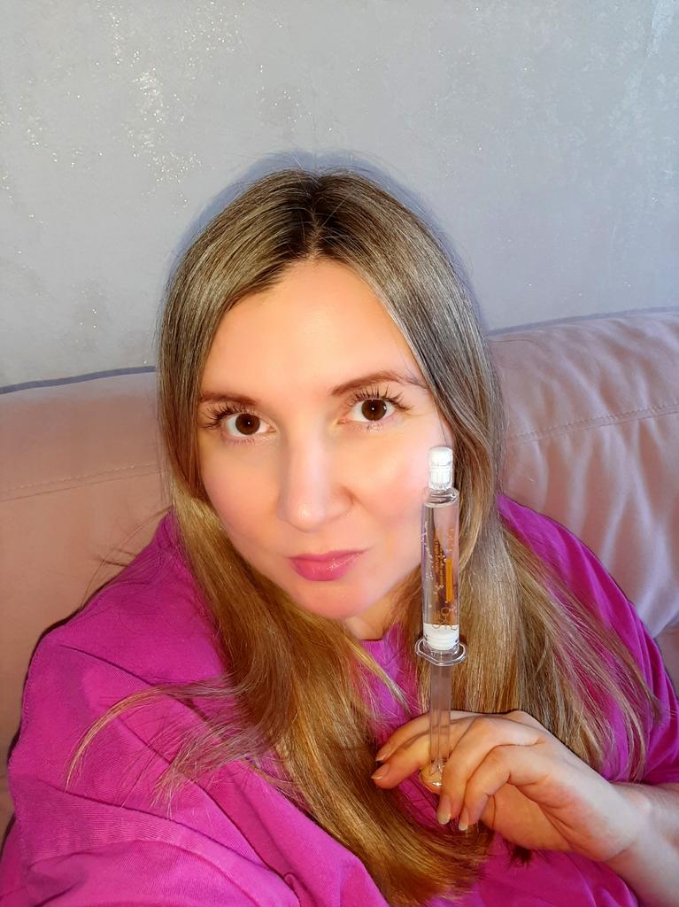 Anti-aging serum with hyaluronic acid The tube has an original design - in the form of a syringe. It is quite convenient to use. 😊 The serum is transparent, slightly watery and has almost no smell. It should be applied to cleansed face skin twice a day: in the morning and in the evening. Avoid the eyes and lips zones. It absorbs very well, doesn't leave a greasy trace and a film effect, does not tighten the skin. There are no unpleasant sensations after application. ❤ Apply your favorite nourishing cream after the procedure. I recommend it for purchase. 👍