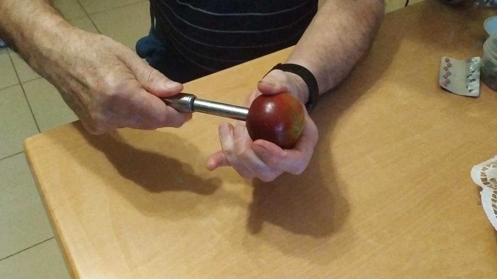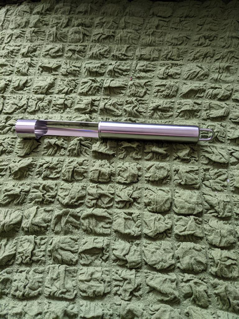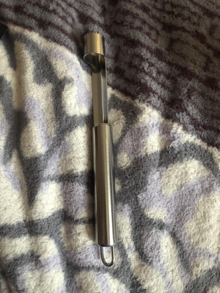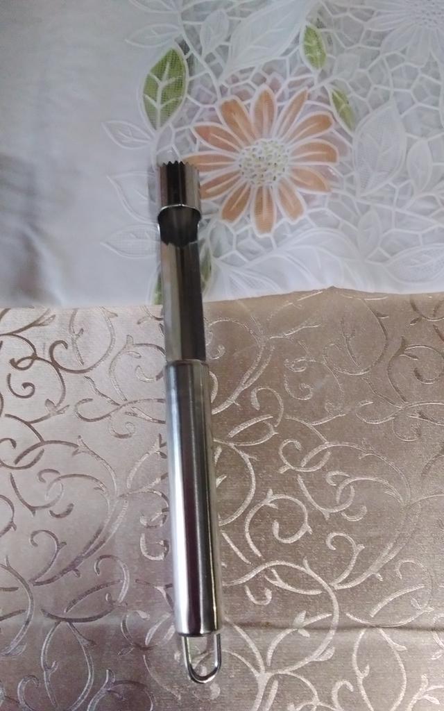 Great helper in the kitchen Helps remove the middle of apples, eggplants, and peppers