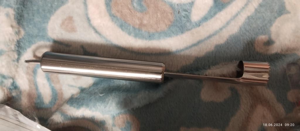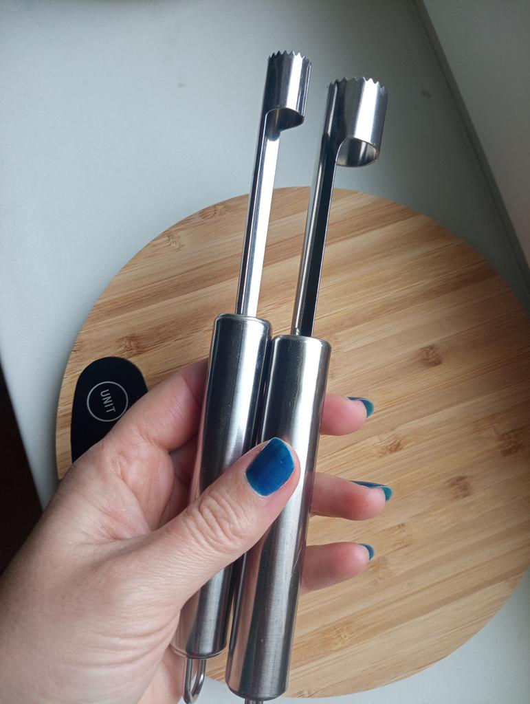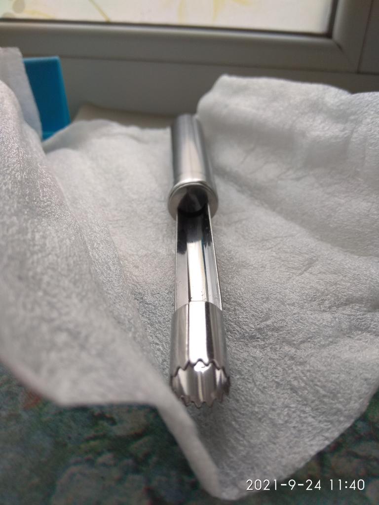 I received this device for cutting out the core of apples in about a month. I took the one with the largest diameter. I've already tried it. The core is cut out very quickly. But you need to, holding an apple in your hands, turn this device left and right, as if screwing it in, then it turns out very quickly.