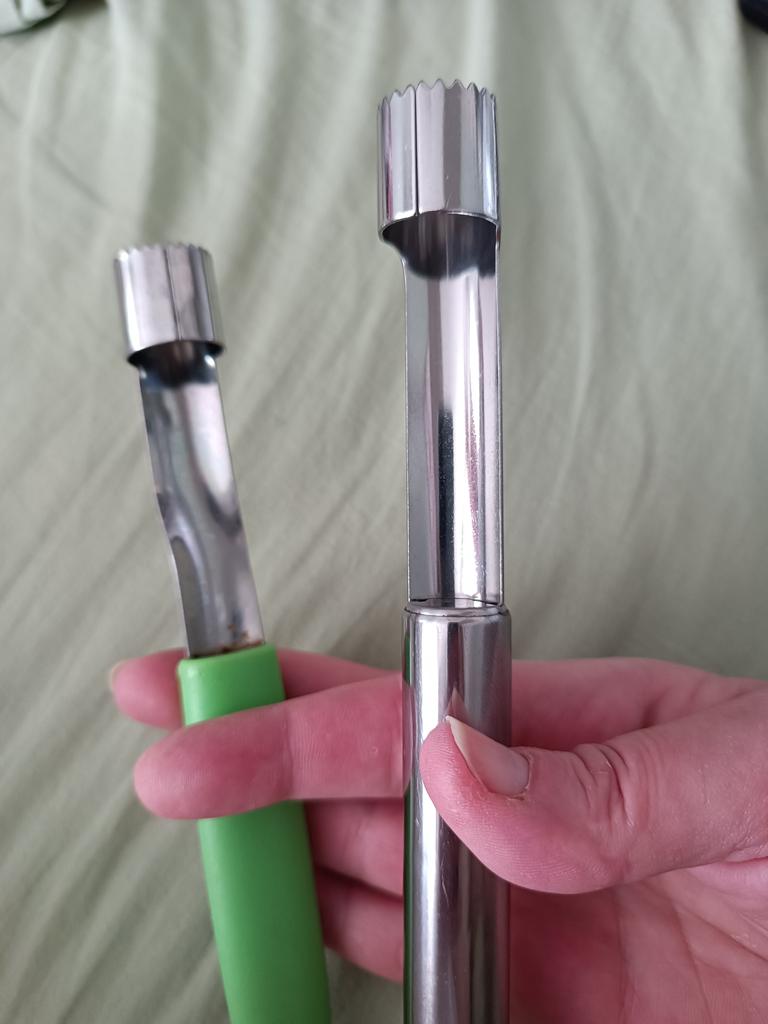 I already have the same device, but with a diameter of 2 cm wider, now I ordered one of 1.4 cm, because apples are sometimes small and this device is just suitable for cutting out the core.