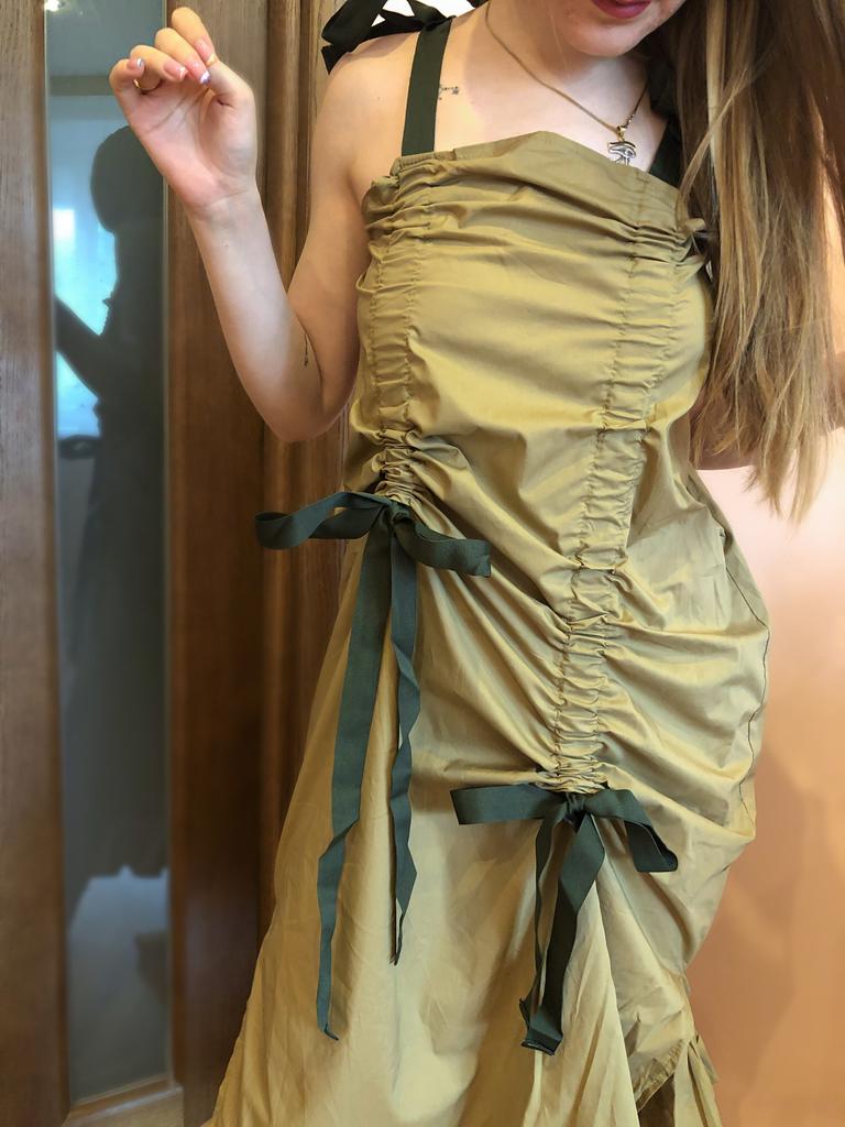 2023 New Arrival Women Green Asymmetrical Dress Spaghetti Strap Drawstring Side Spilt Loose Vestidos Korean Stylish Dress