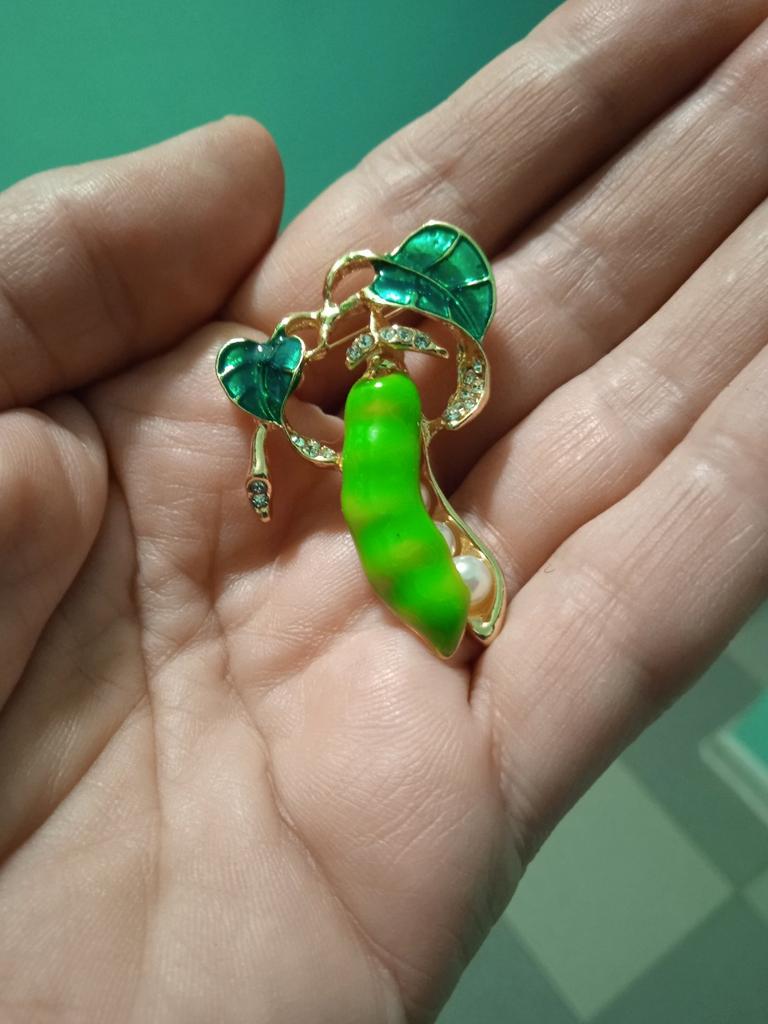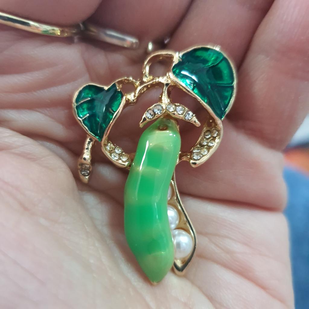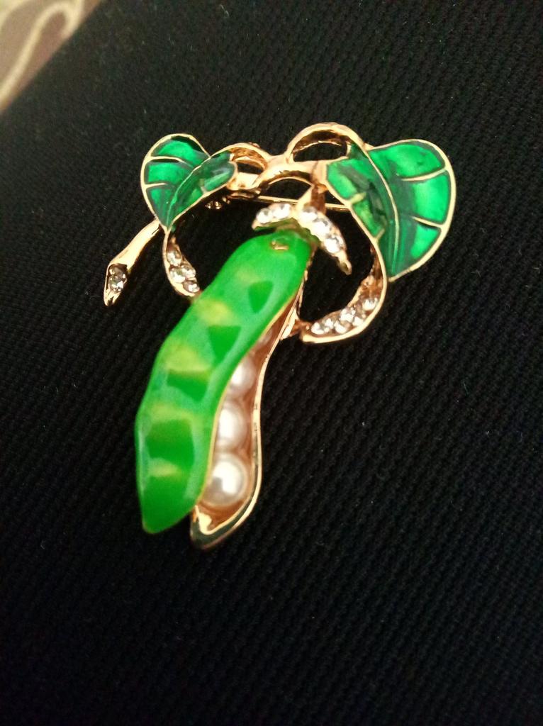 Blucome Enamel Green Pea Brooches For Women Corsages Women Sweater Pins Size:4.5*3.5 Cm