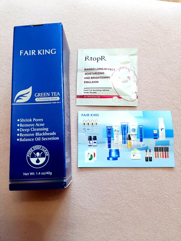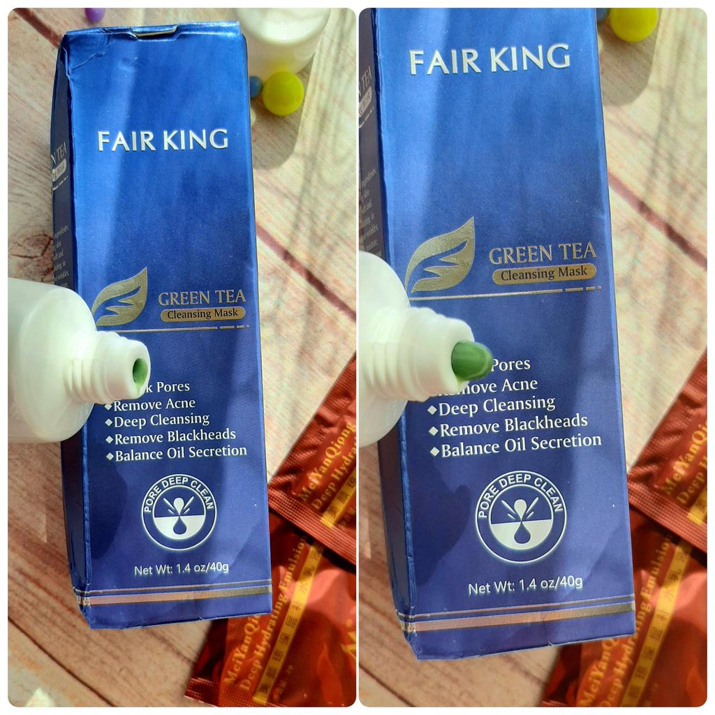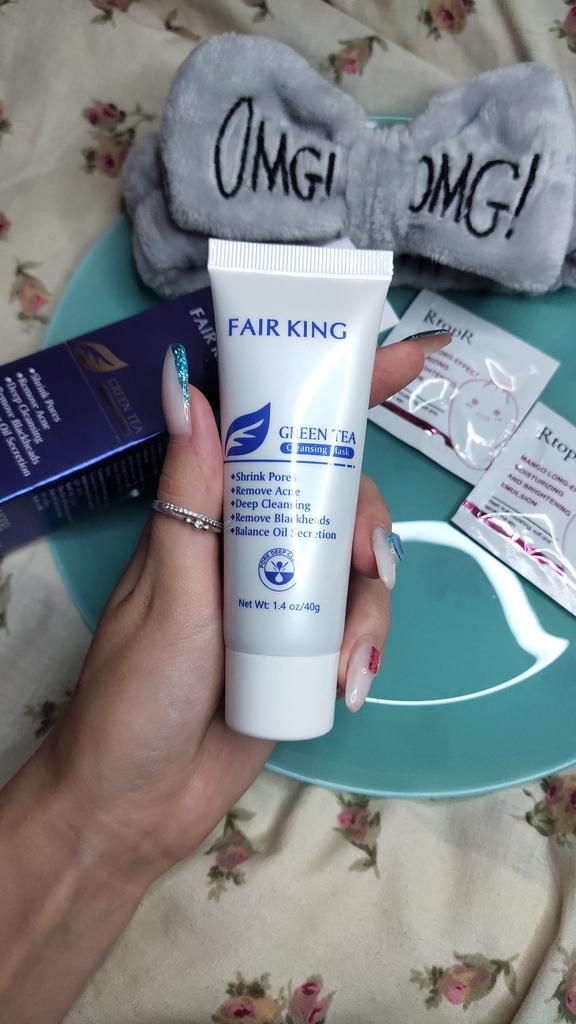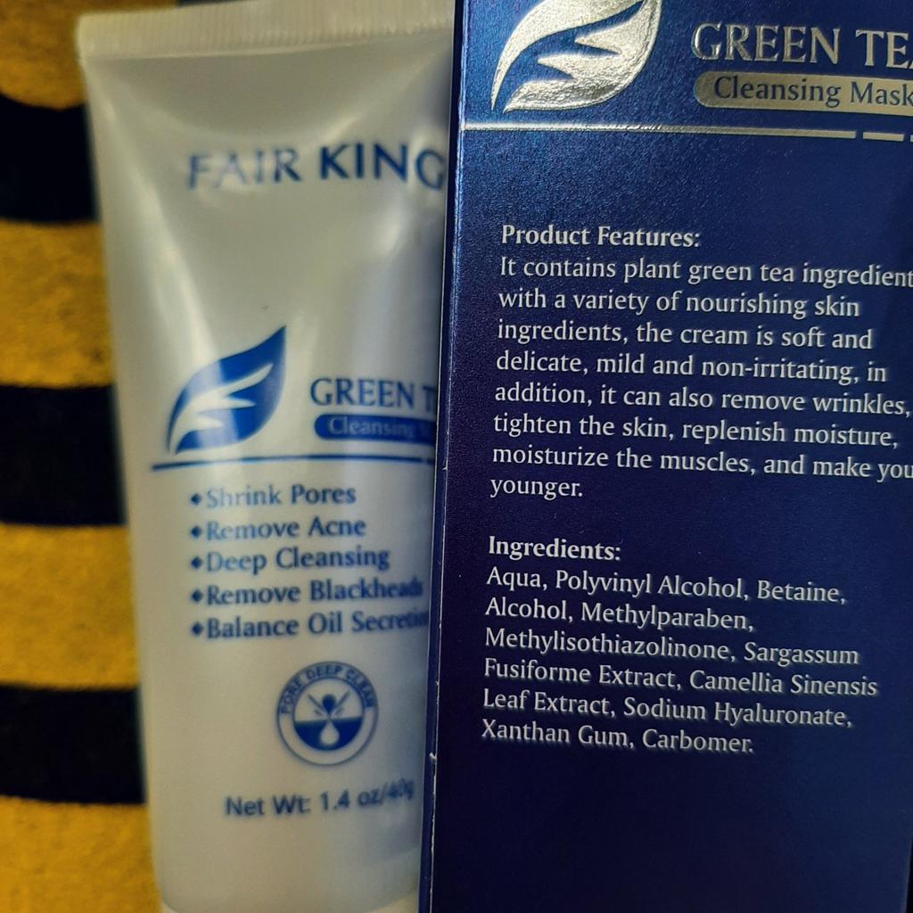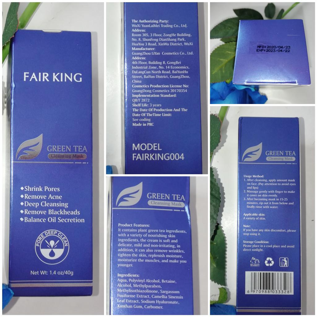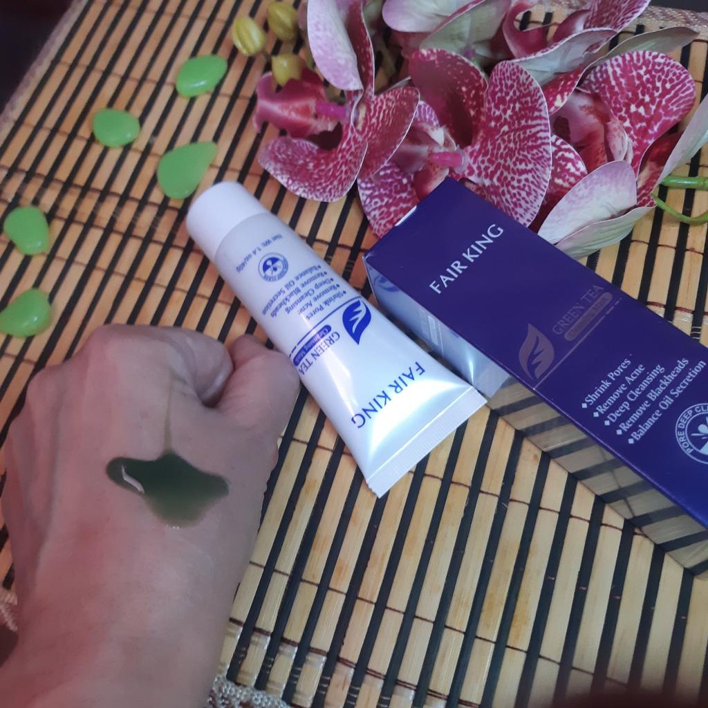 ✨ Fair King Green Tea Face Mask ✨ Cleanses impurities, removes blackheads, moisturizes and softens the skin. You must apply on clean and dry skin and let it rest for 20 minutes. After 20 minutes it will be dry and you can remove it. With warm water you can remove the remains of the mask ✨ The result is noticeable from the first use and does not hurt. Removes all dead cells, empties dirt from the pores and leaves the skin soft and exfoliated.. After a month of use I will talk about the results again but the first impression is very positive. It is recommended to use once or twice a week. The product came perfectly sealed, very hygienic, and it is also cruelty free (not tested on animals). Great quality and a perfect price. Without a doubt, I recommend it 100% 🛍️ the seller added some mango mask samples as a gift 💖 It took very little time to arrive in Spain and the seller packed the order very well so that the product was not damaged.