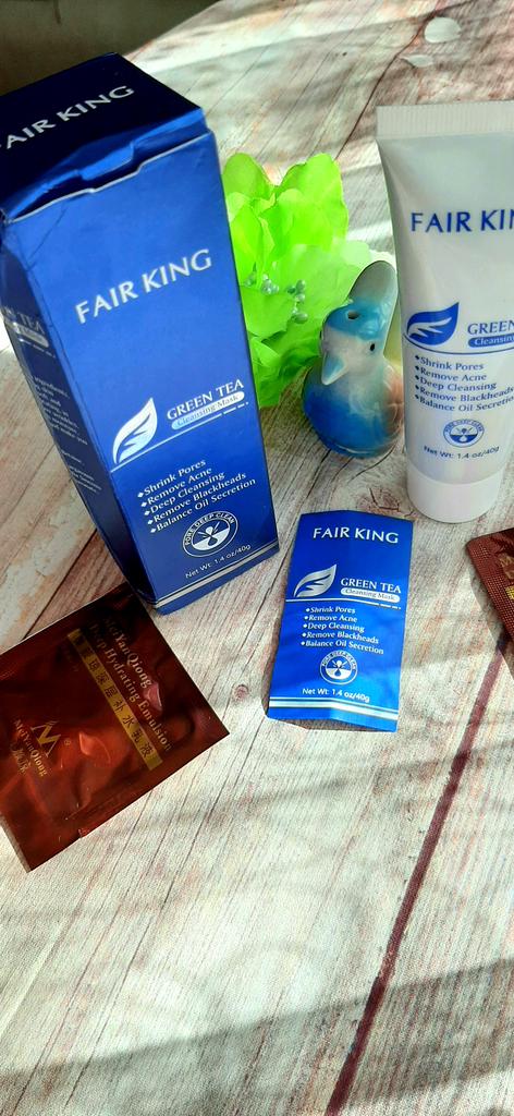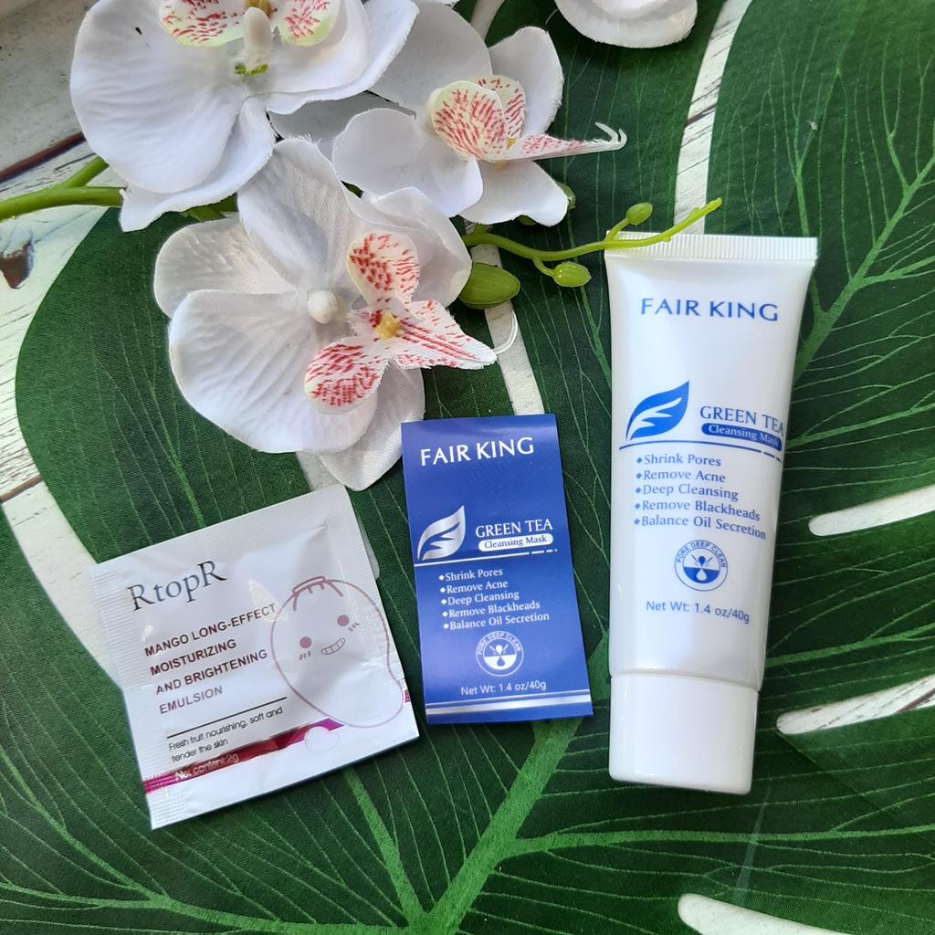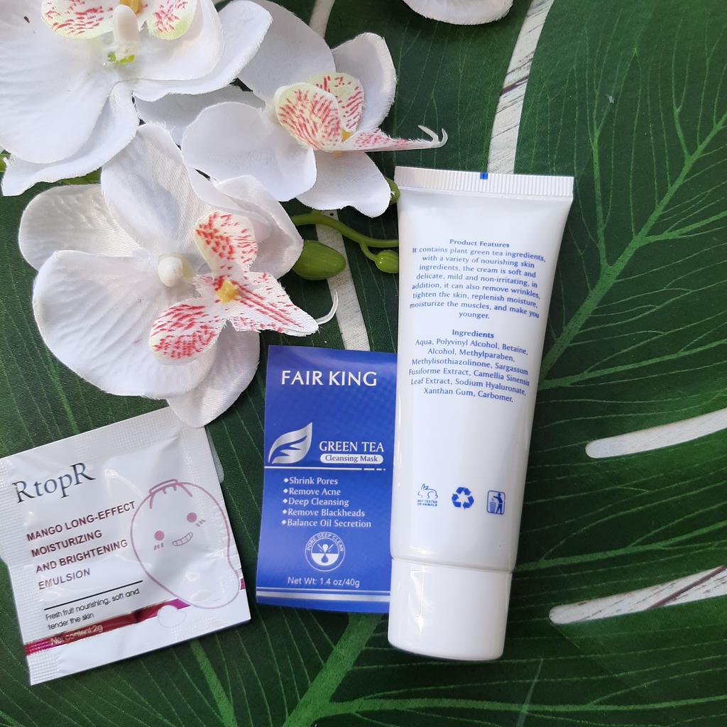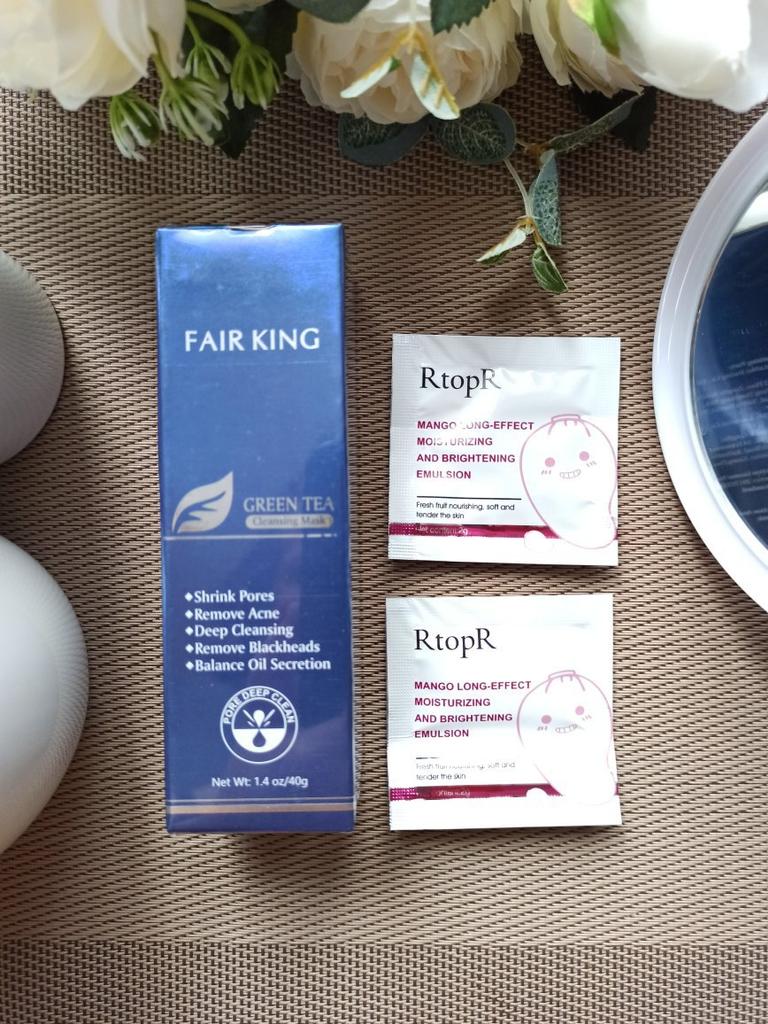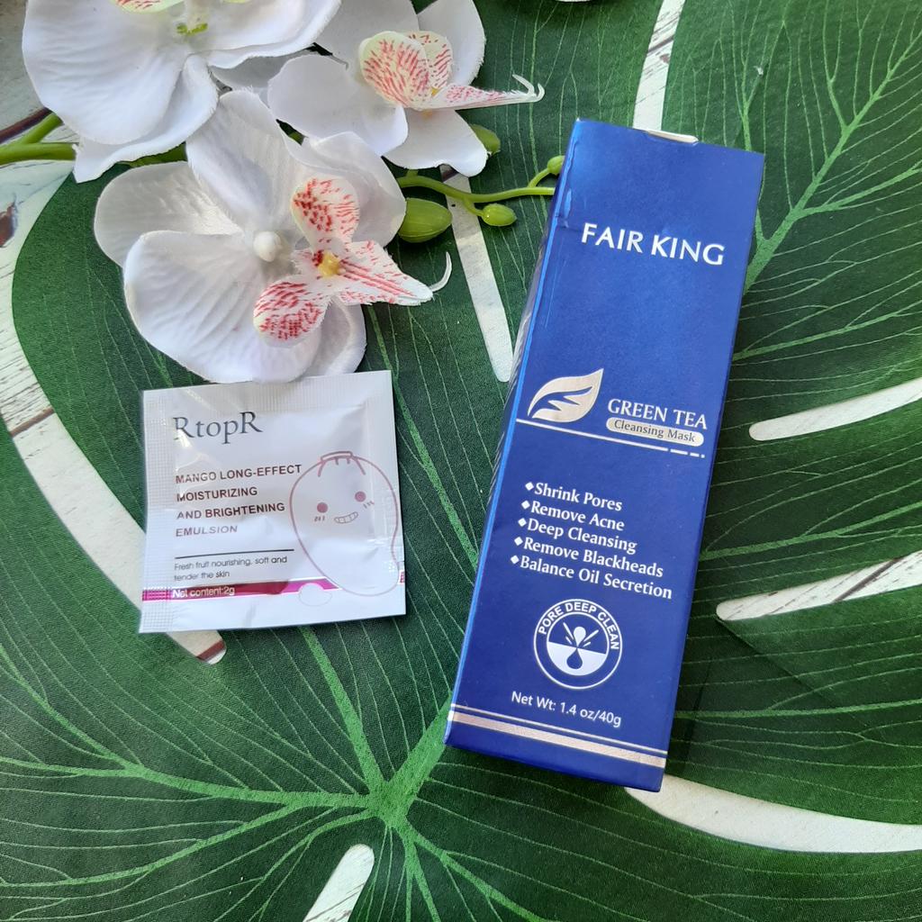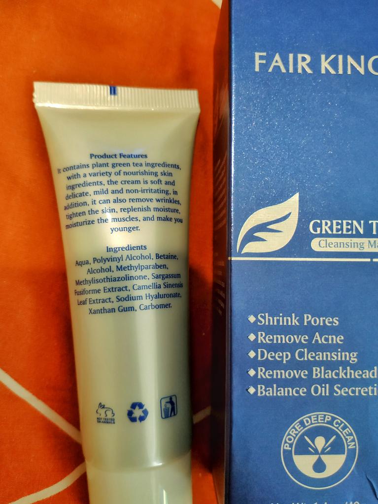 ✨ Fair King Green Tea Face Mask ✨ Cleanses impurities, removes blackheads, moisturizes and softens the skin. You must apply on clean and dry skin and let it rest for 20 minutes. After 20 minutes it will be dry and you can remove it. With warm water you can remove the remains of the mask ✨ The result is noticeable from the first use and does not hurt. Removes all dead cells, empties dirt from the pores and leaves the skin soft and exfoliated.. After a month of use I will talk about the results again but the first impression is very positive. It is recommended to use once or twice a week. The product came perfectly sealed, very hygienic, and it is also cruelty free (not tested on animals). Great quality and a perfect price. Without a doubt, I recommend it 100% 🛍️ the seller added some mango mask samples as a gift 💖 It took very little time to arrive in Spain and the seller packed the order very well so that the product was not damaged.