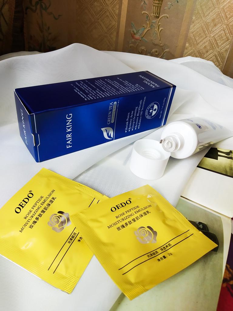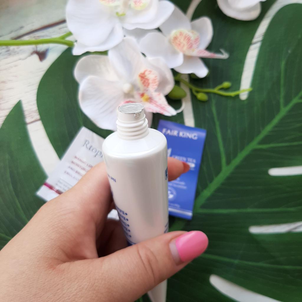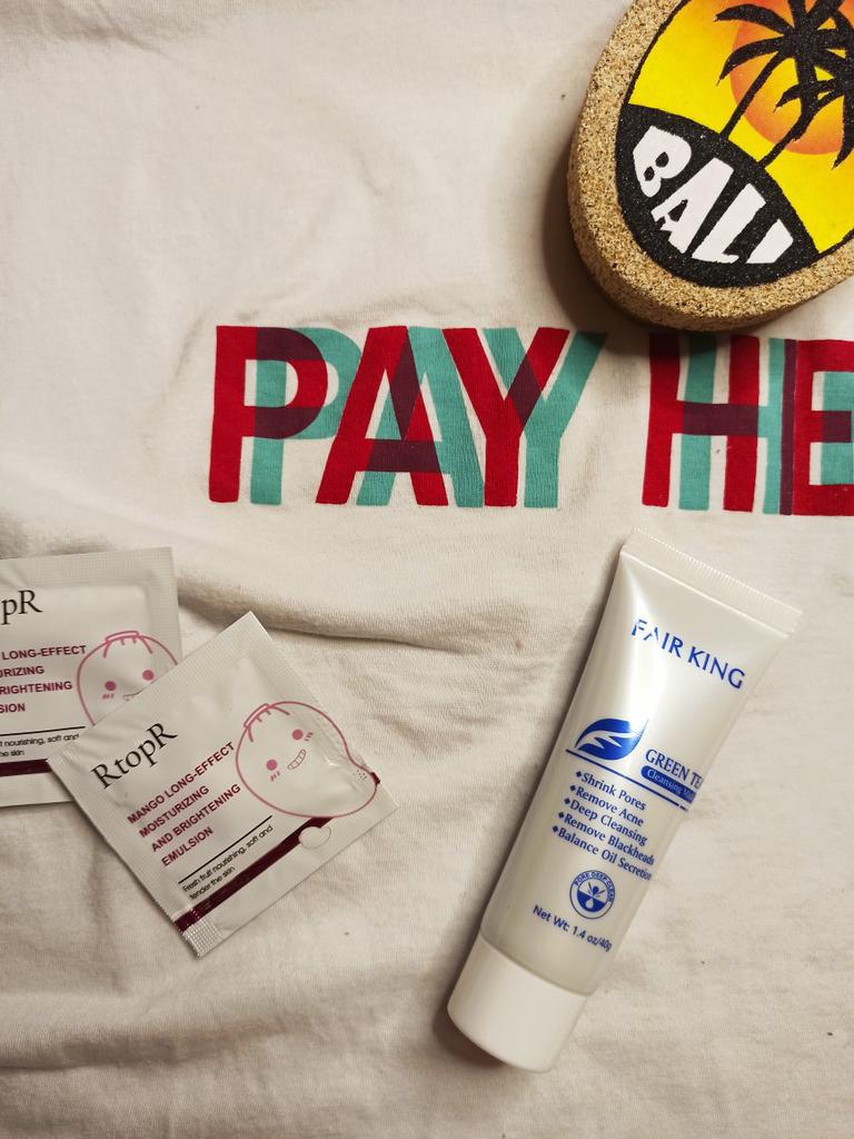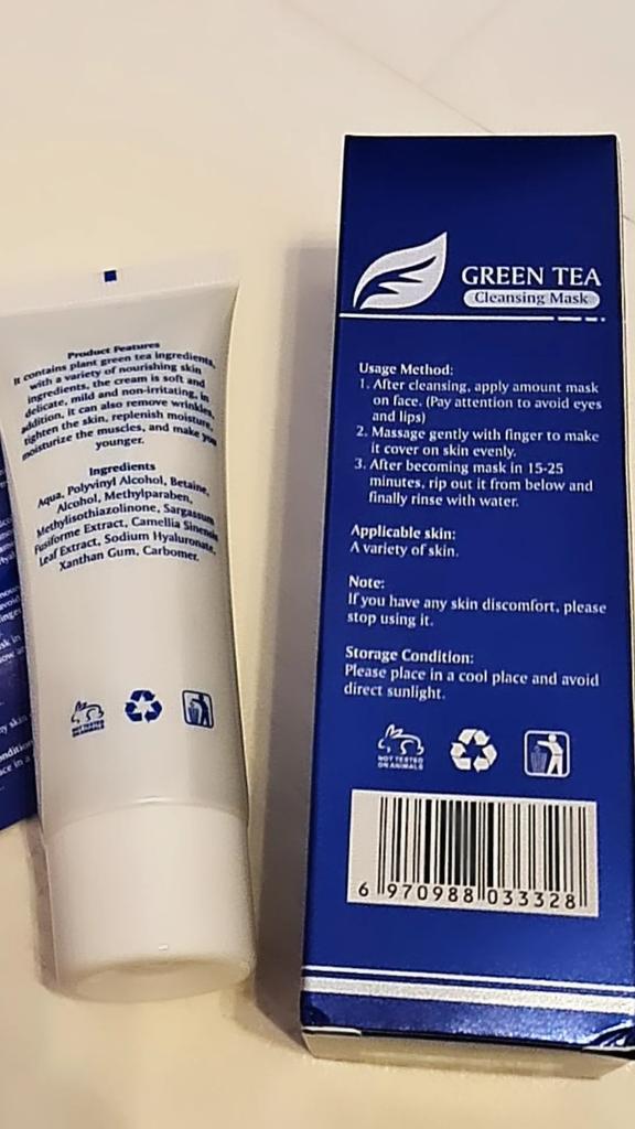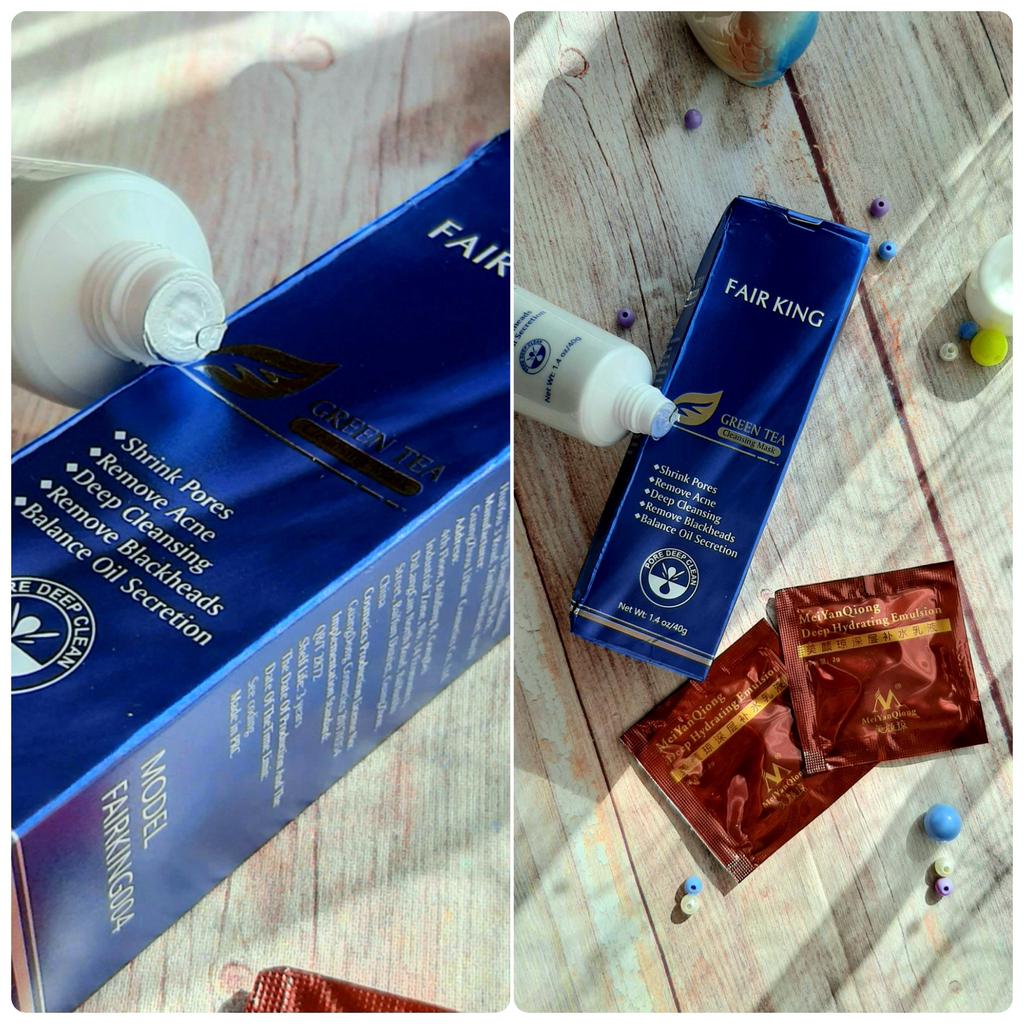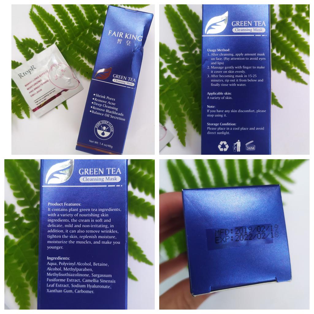 ✨ Fair King Green Tea Face Mask ✨ Cleanses impurities, removes blackheads, moisturizes and softens the skin. You must apply on clean and dry skin and let it rest for 20 minutes. After 20 minutes it will be dry and you can remove it. With warm water you can remove the remains of the mask ✨ The result is noticeable from the first use and does not hurt. Removes all dead cells, empties dirt from the pores and leaves the skin soft and exfoliated.. After a month of use I will talk about the results again but the first impression is very positive. It is recommended to use once or twice a week. The product came perfectly sealed, very hygienic, and it is also cruelty free (not tested on animals). Great quality and a perfect price. Without a doubt, I recommend it 100% 🛍️ the seller added some mango mask samples as a gift 💖 It took very little time to arrive in Spain and the seller packed the order very well so that the product was not damaged.