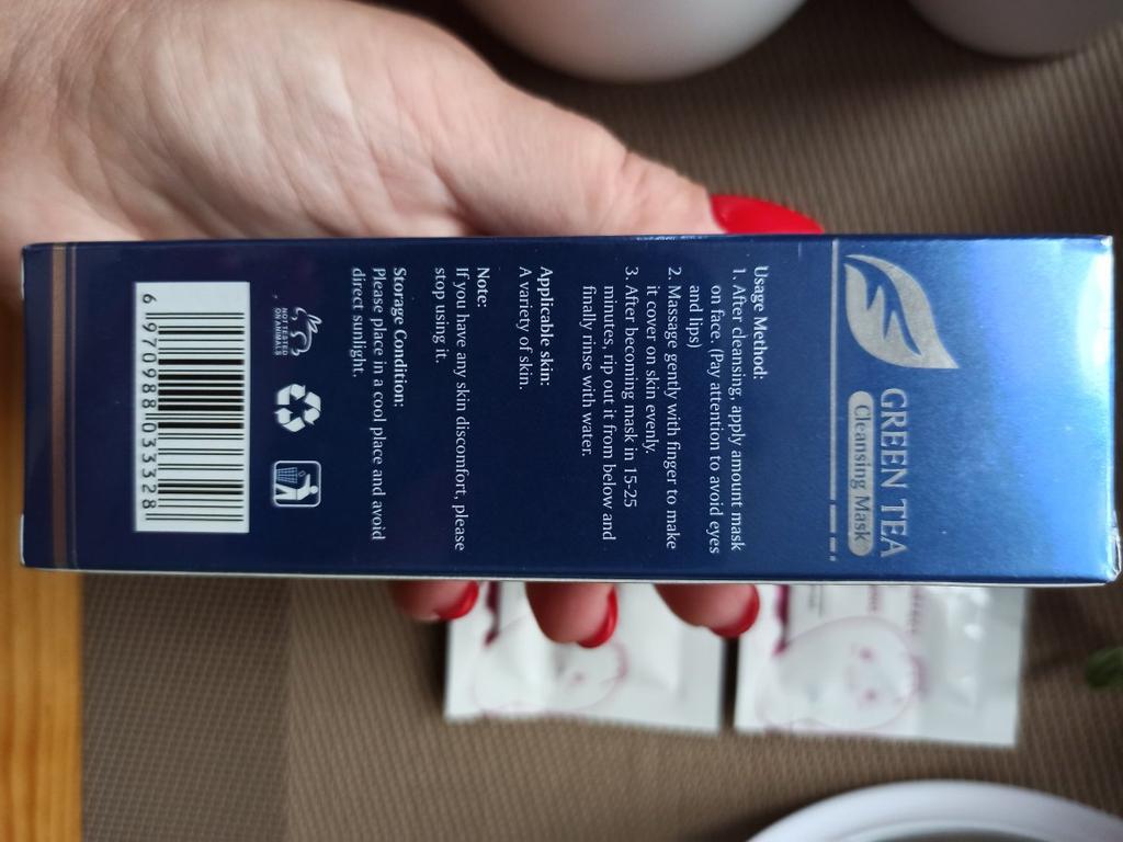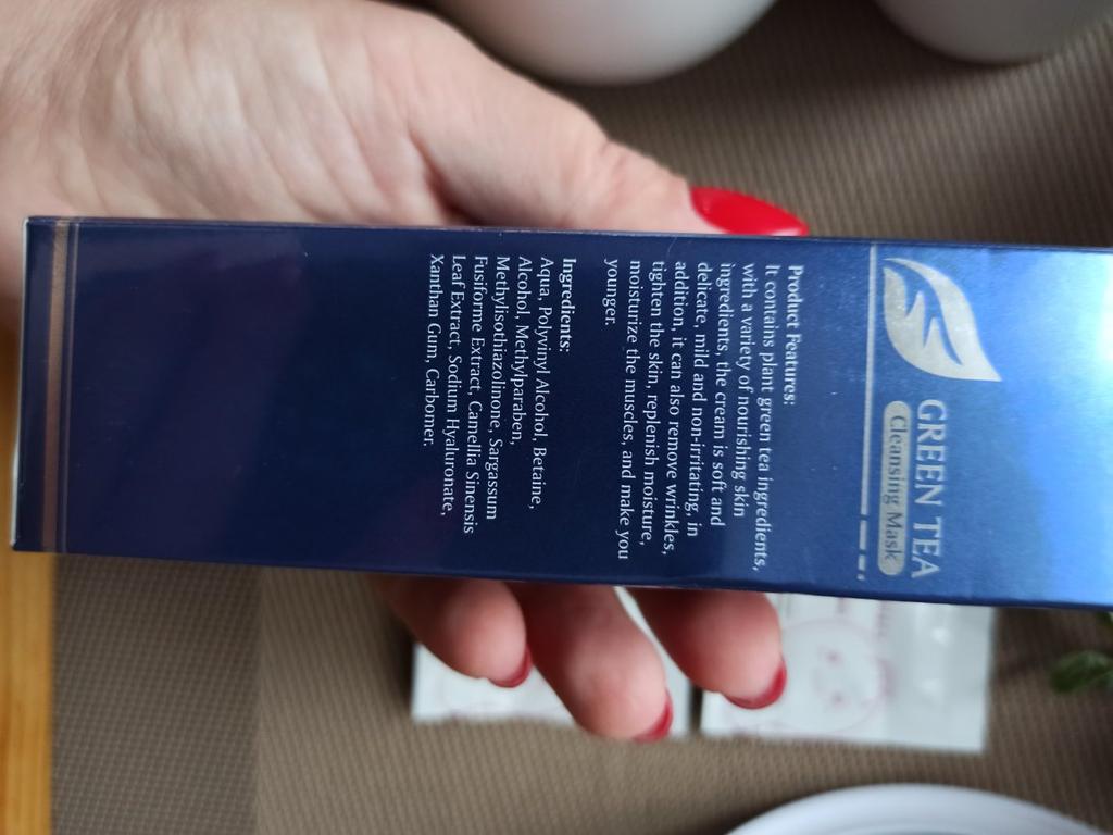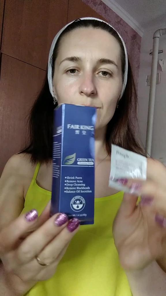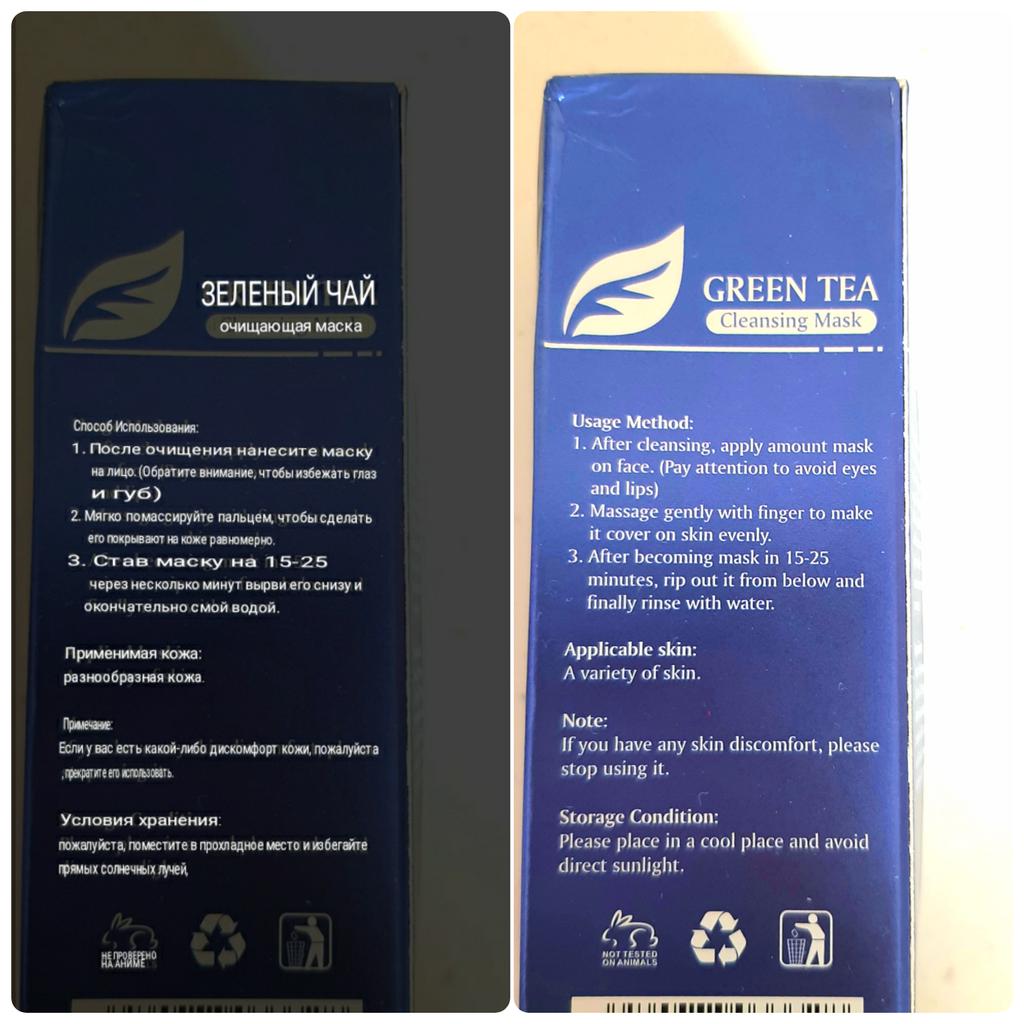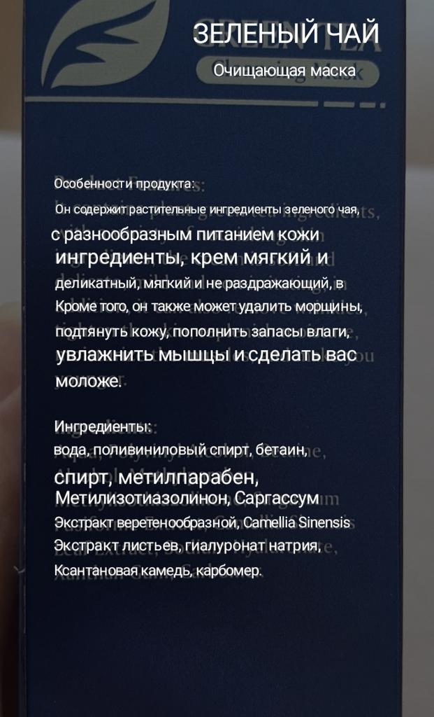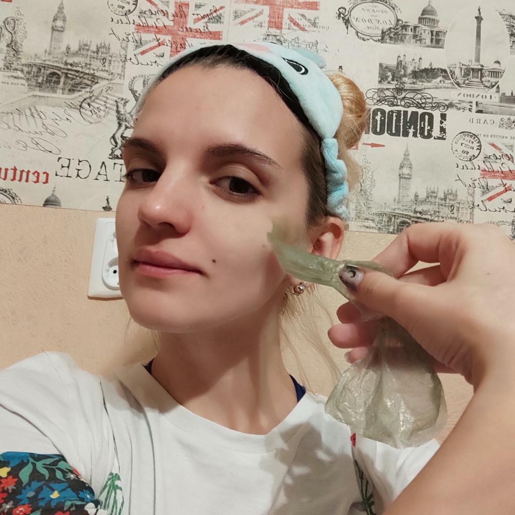 Mask-film for the face with green tea extract🍵🍃 The composition is quite good (see photo) What the manufacturer promises: ▫️Narrows pores ▫️ Removes acne ▫️ Deeply cleanses ▫️ Removes black spots ▫️ Regulates self-discharge What I managed to see clearly after only two uses: ✔️ Visibly narrows pores, but not for long, the effect lasts for several hours. ✔️ Coincidence or not, small pimples dry up the next day and disappear quickly. ✔️ Even the ones I didn't know about were pulled out 🗿 The first test application was done four days after professional facial cleansing, but the mask still found something good to pull out of the pores (see photo) 🍵🍃 I am satisfied with the purchase, I recommend the product and the seller. Patches were put under the eyes as a gift, thank you!