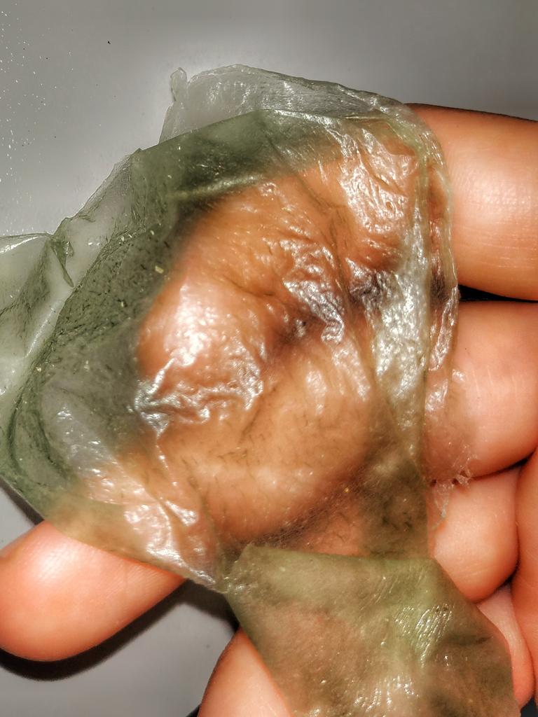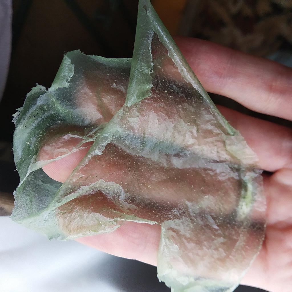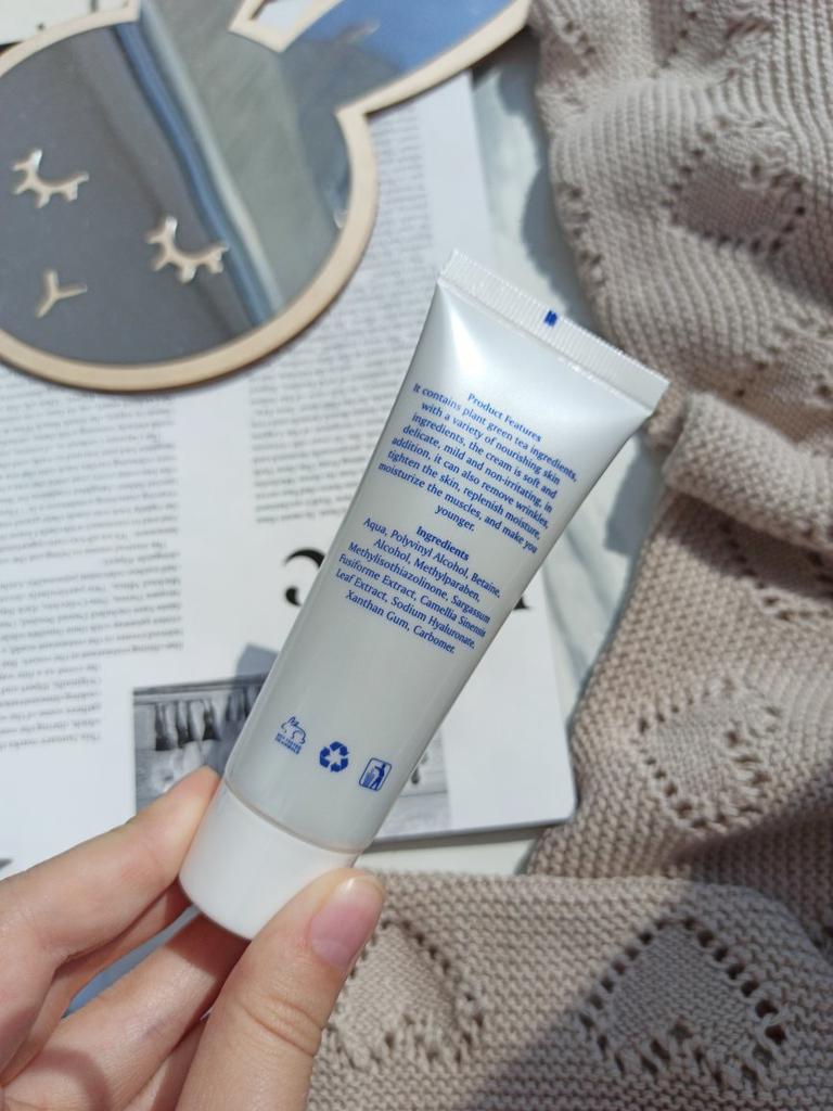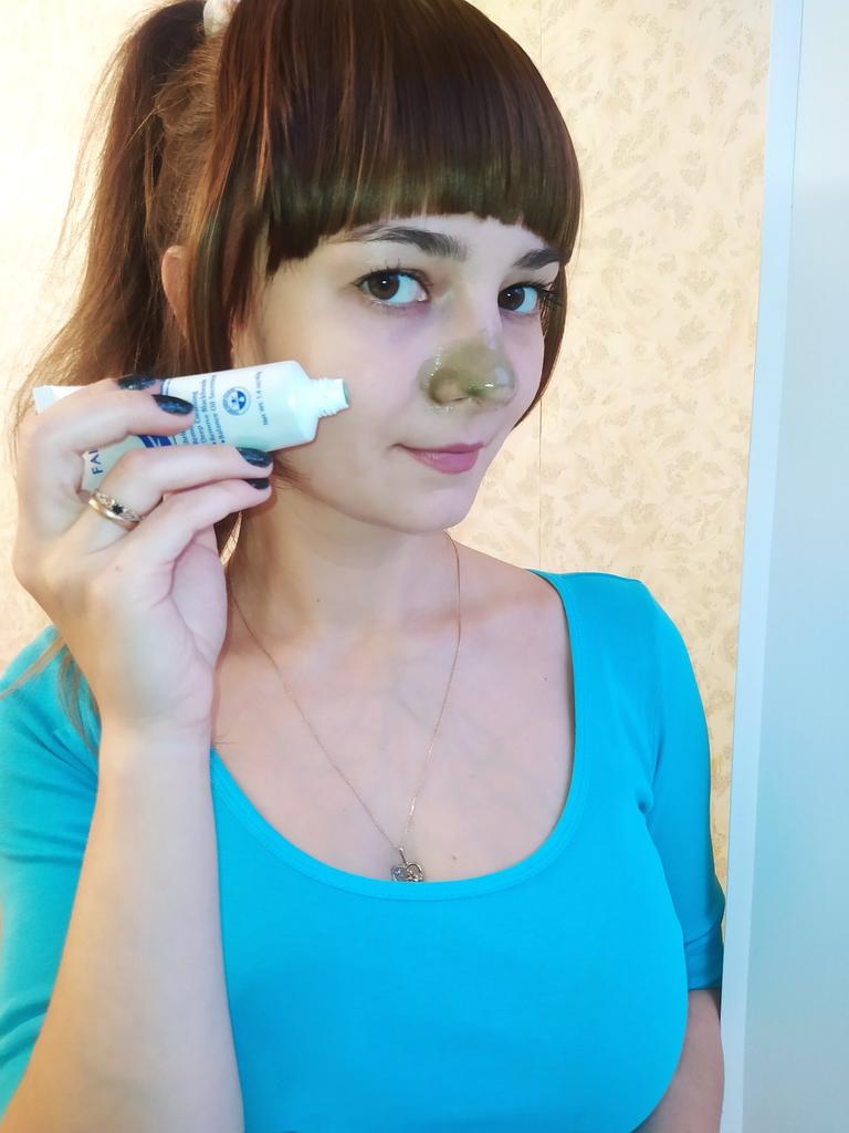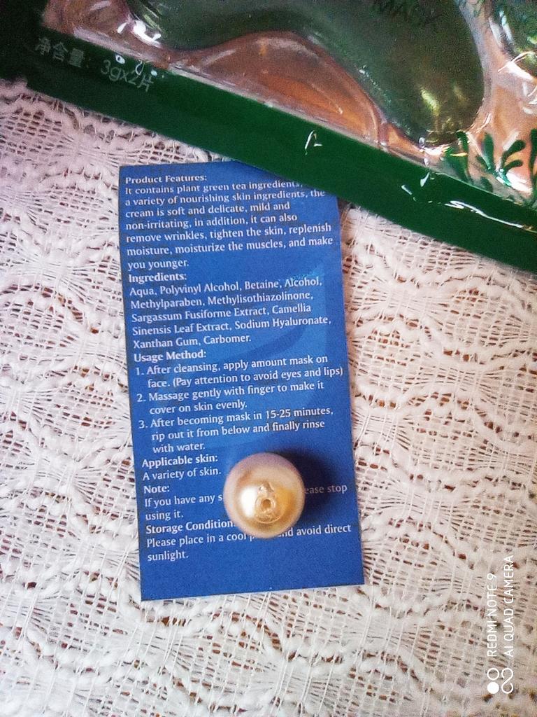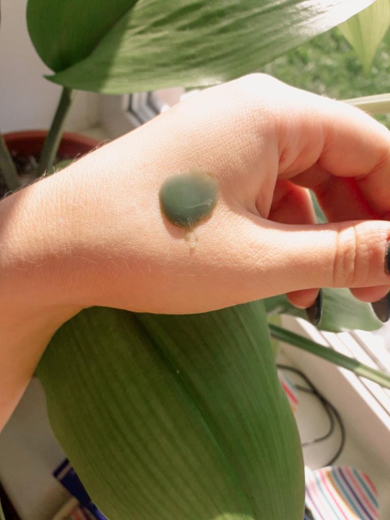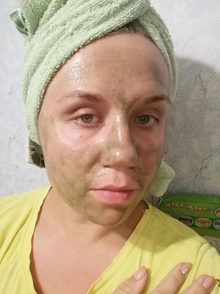 Mask-film for the face with green tea extract🍵🍃 The composition is quite good (see photo) What the manufacturer promises: ▫️Narrows pores ▫️ Removes acne ▫️ Deeply cleanses ▫️ Removes black spots ▫️ Regulates self-discharge What I managed to see clearly after only two uses: ✔️ Visibly narrows pores, but not for long, the effect lasts for several hours. ✔️ Coincidence or not, small pimples dry up the next day and disappear quickly. ✔️ Even the ones I didn't know about were pulled out 🗿 The first test application was done four days after professional facial cleansing, but the mask still found something good to pull out of the pores (see photo) 🍵🍃 I am satisfied with the purchase, I recommend the product and the seller. Patches were put under the eyes as a gift, thank you!