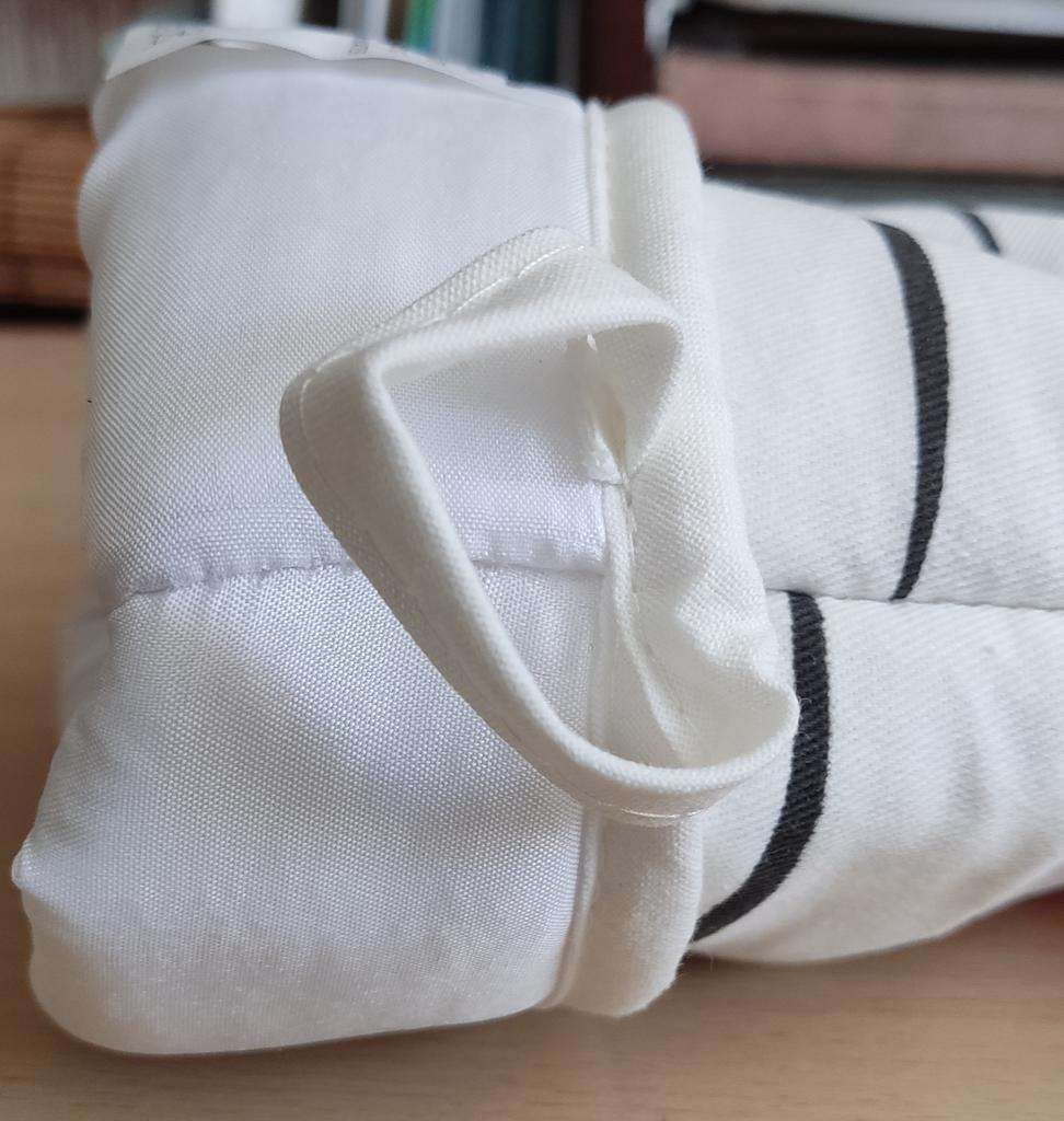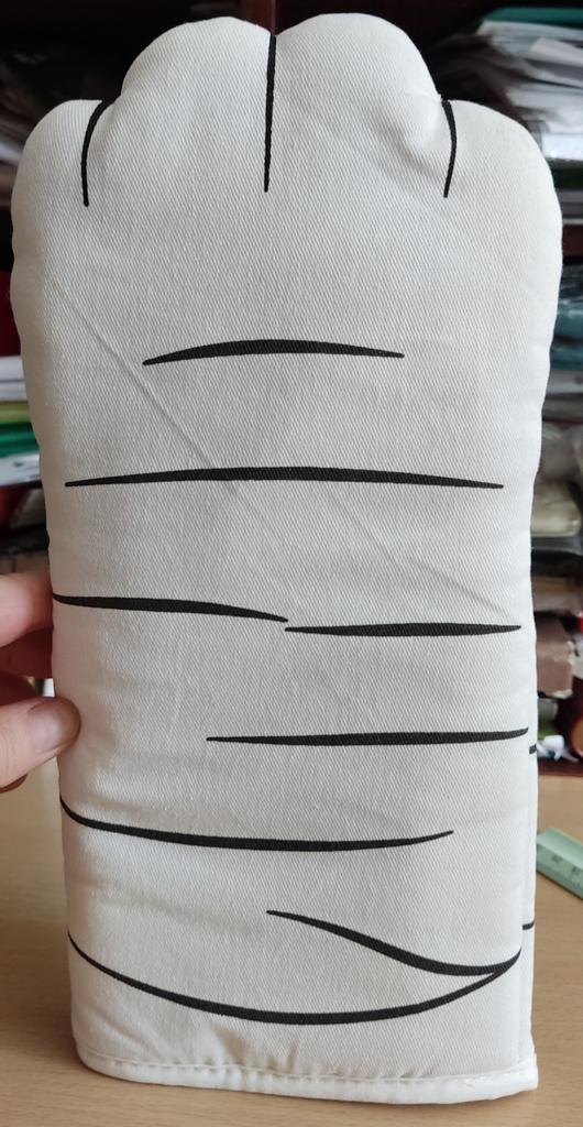 The oven mitt is super! Long, thick, bright and natural fabric on top. Thank you!