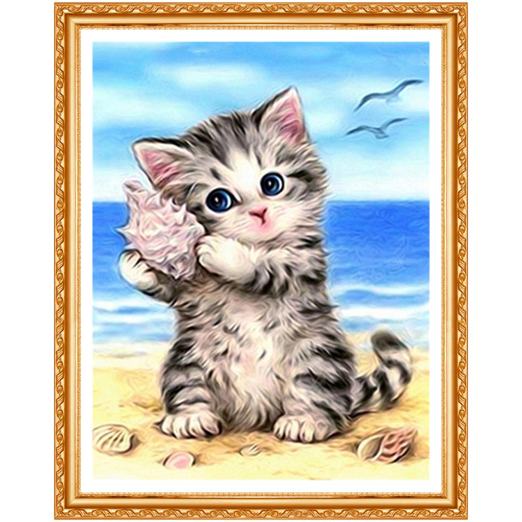 5D Diamond Painting Cross Stitch Embroidery Cat Full Round Rhinestones Pattern Home Decor Needle