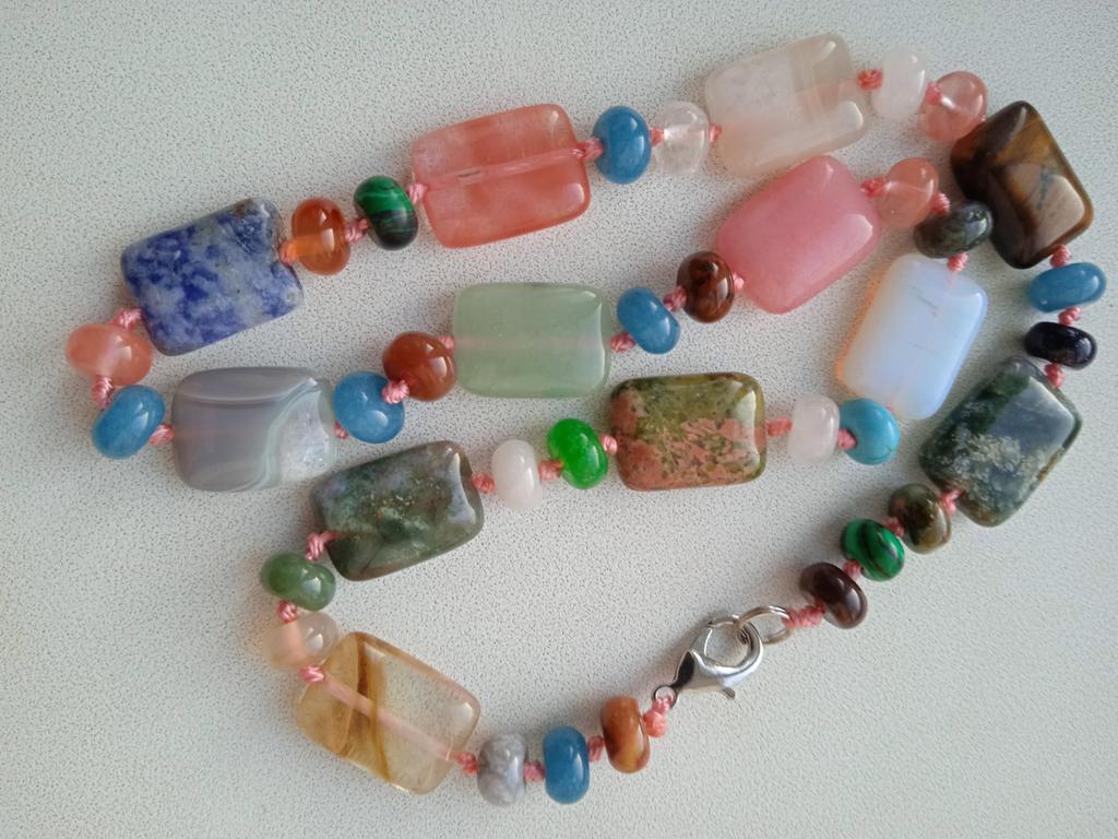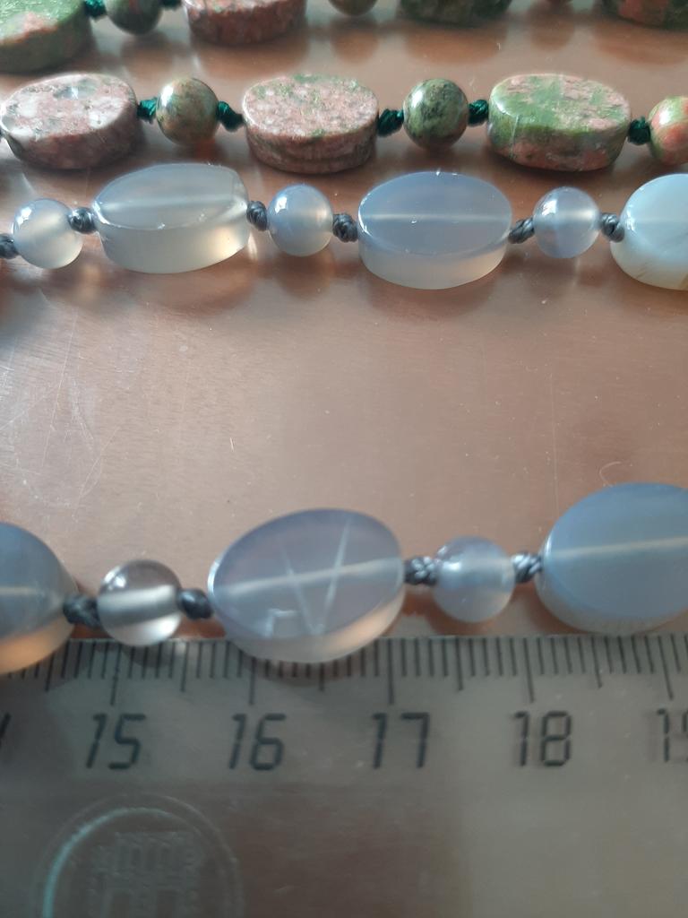 The stones are pretty. There are small chips. But not critical. I was hoping that the necklace would be larger and longer. But I will add an extension cord.
