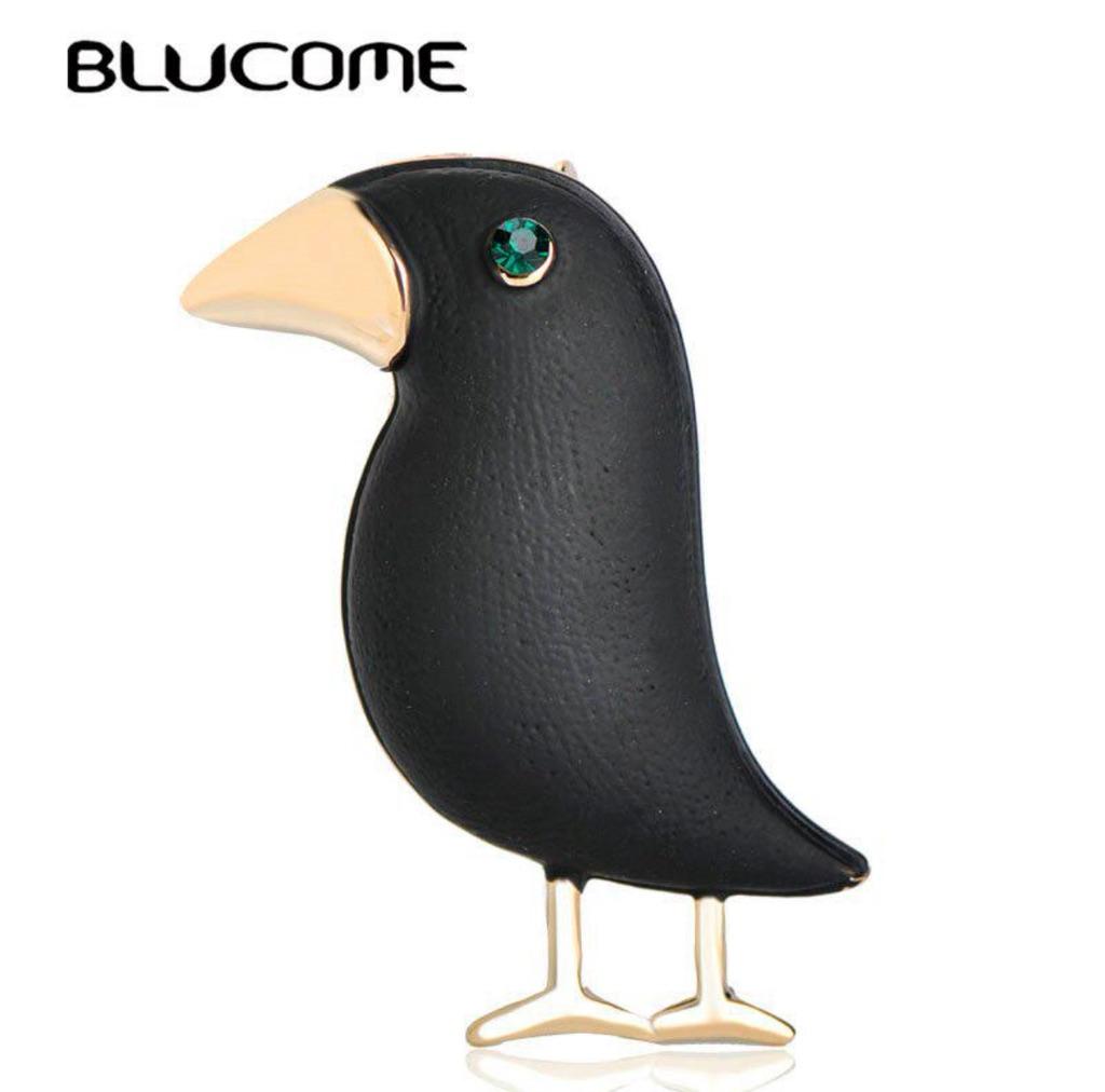 Blucome Black Crow Brooch Enamel Bird Corsage Men Women Kids Suit Dress Hats Collar Brooch Pins Animal Scarf Buckles Accessories