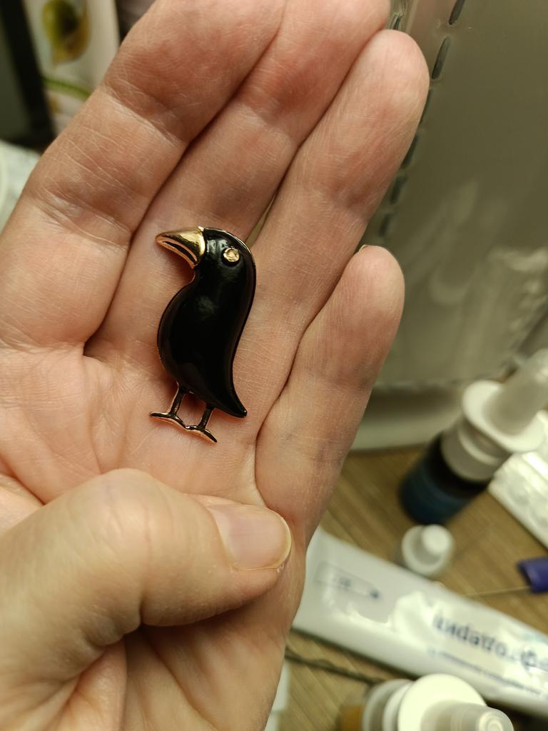 I received the goods in a month in a combined parcel 🚂. The track was tracked completely. The arrival at the point of issue was announced by sms 📲. The packaging is very careful: an air-bubble envelope + a piece of air-bubble film additionally wrapped the brooch itself in an individual package. Goods without defects. Very cute brooch-crow 🖤🖤🖤. If I could, I would add another star on top 🌟😁🌟. The crow itself is matte, the paws and beak are golden, the eye is a small green stone. I'm not sure about the material the eye is made of, but it shines nicely in the rays. 🌞 I really liked the brooch 🖤, and the Blucome brand has never disappointed, so I advise. 😁 I'm adding enough photos to make it easier for you to decide. If the review was helpful, support me with likes and dislikes ❤🖤❤. All in a good mood and good shopping 😁💖🛍
