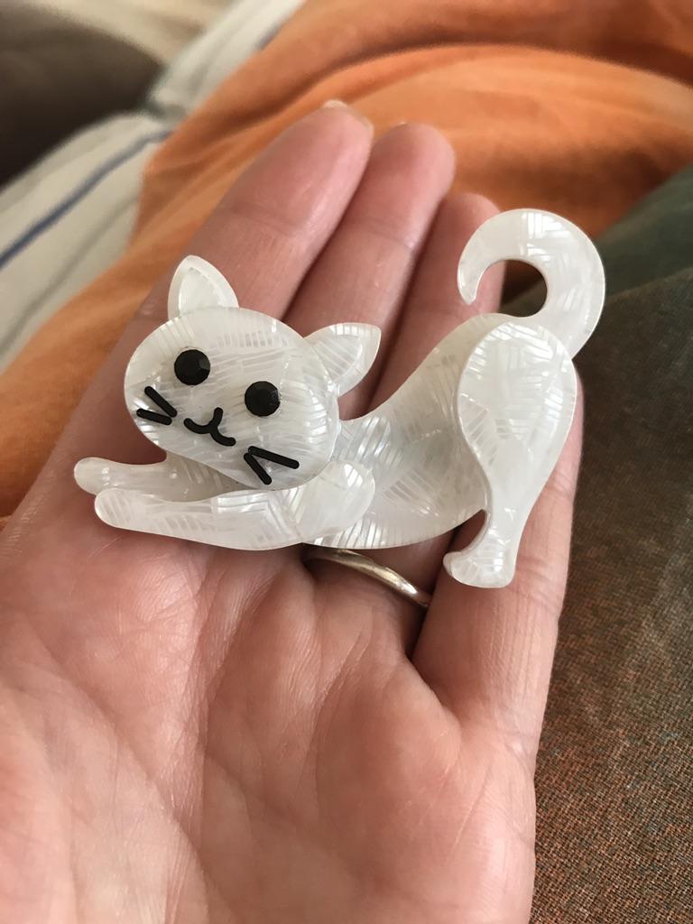 Beautiful š cat brooch! The order arrived in just 2 weeks at home. Pin is made very well, the quality is outstanding. You can wear it as a corsage or pin it on a bag. I gave it to a good friend as a present. She is getting 2 cats next week!