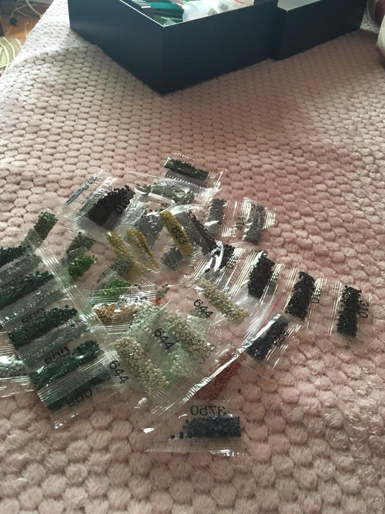 I made the drawing. But there is a lot of darkness. I would like something lighter. And here's what I didn't like: the black and green beads, which are the main ones, are of a worse quality than the rest
