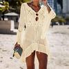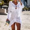 Sexy Knitted Beach Cover Up Tassel Tie Beachwear Tunic Long Pareos Swimsuit Beach Dress Bikini