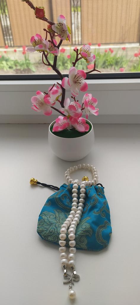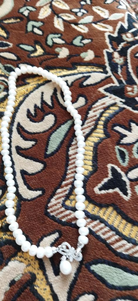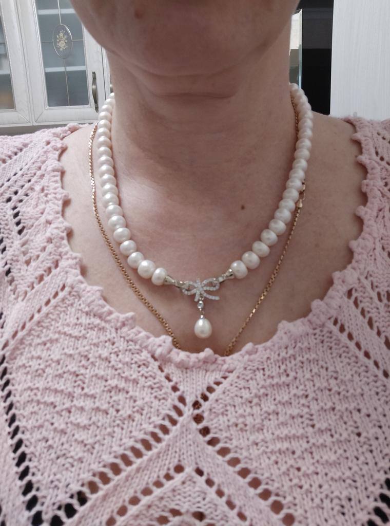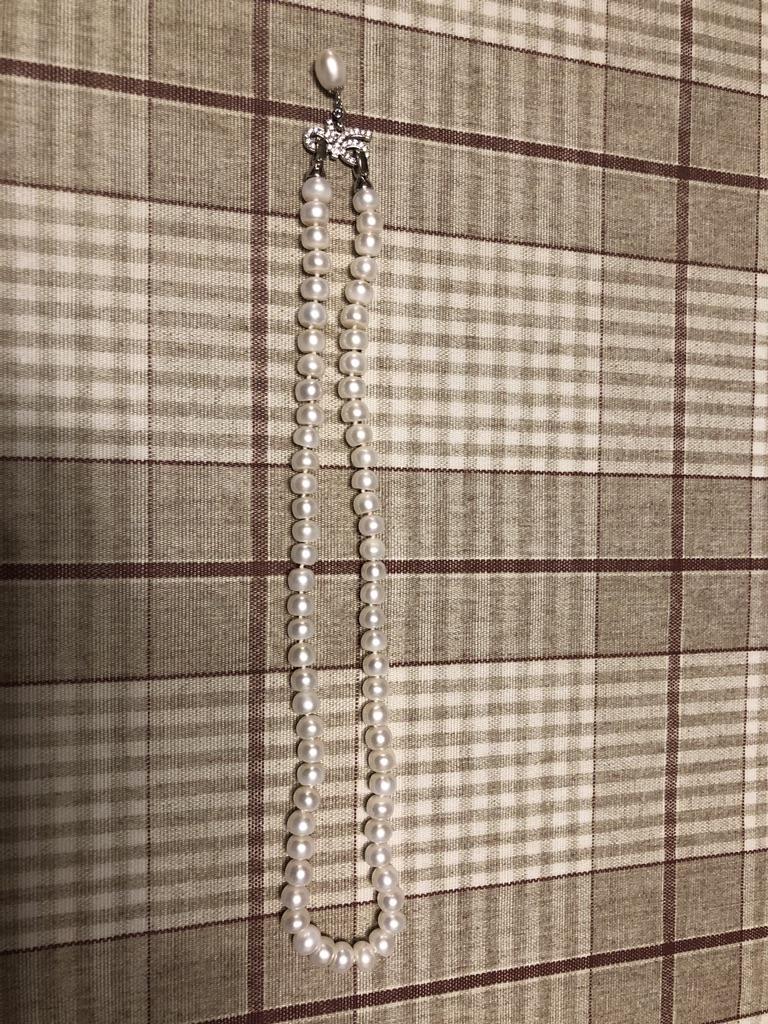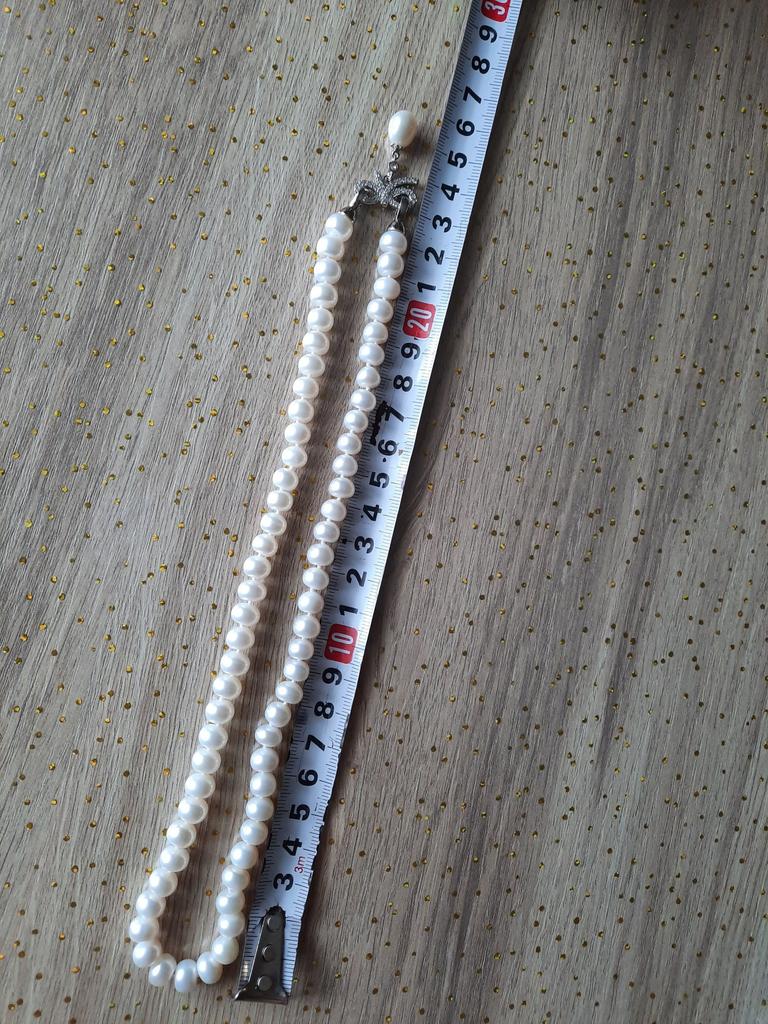 Very satisfied pearl has a slightly flattened shape but very good mother-of-pearl coverage !! Length as requested 50 cm Looks very delicate nice !! Very happy with the purchase!!