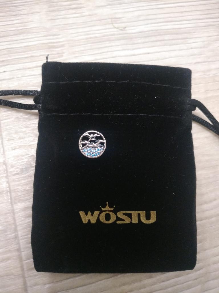 WOSTU Seagulls Charm 925 Sterling Silver Blue Zircon Round Beads Pendant Fit Bracelet Or Necklace