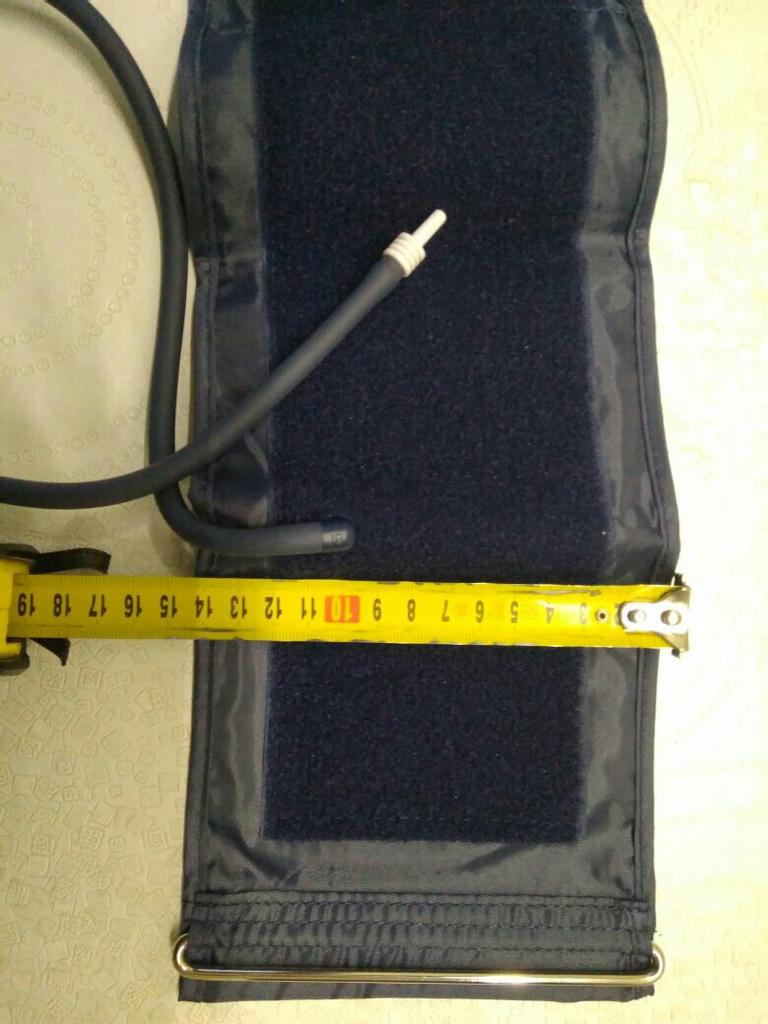 The blood pressure cuff corresponds to the stated size, measures correctly. I recommend the product! From