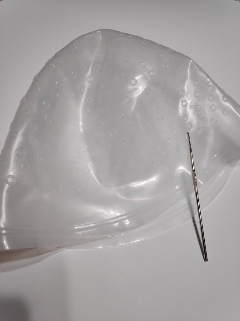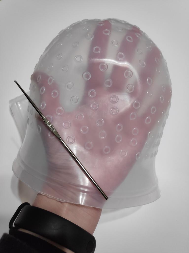 Very happy with my purchase, helmet very well, covered the head well, the holes are not made, just take the hook to drill them in the desired place, and grab her lock of hair, it remains to dye her locks , washable and reusable, it's great, cheaper than at the hairdresser, especially patience and it's won. 20/20 to seller and Joom.