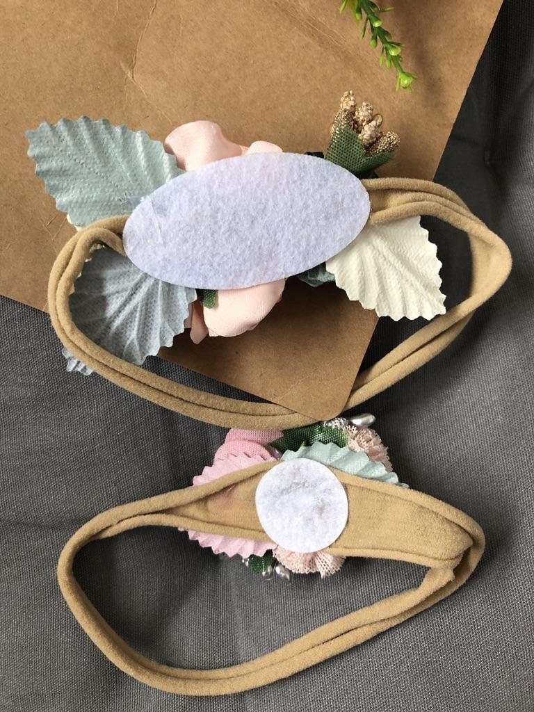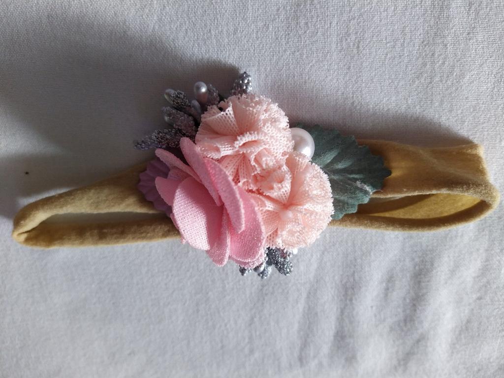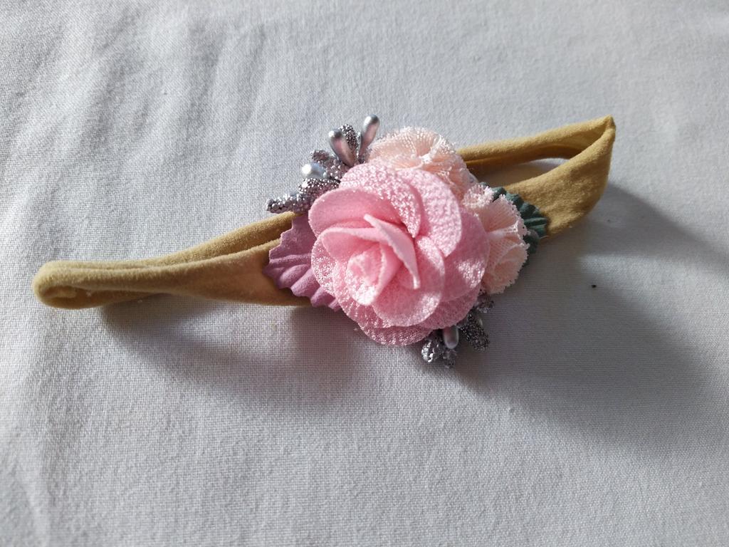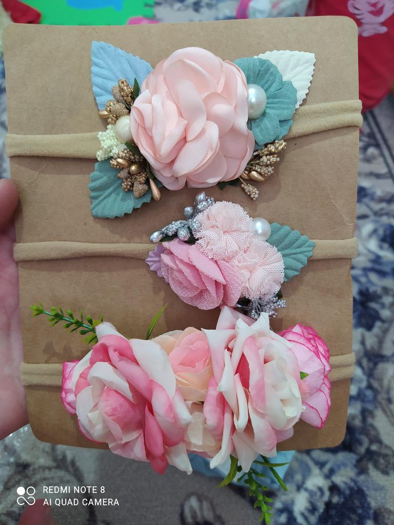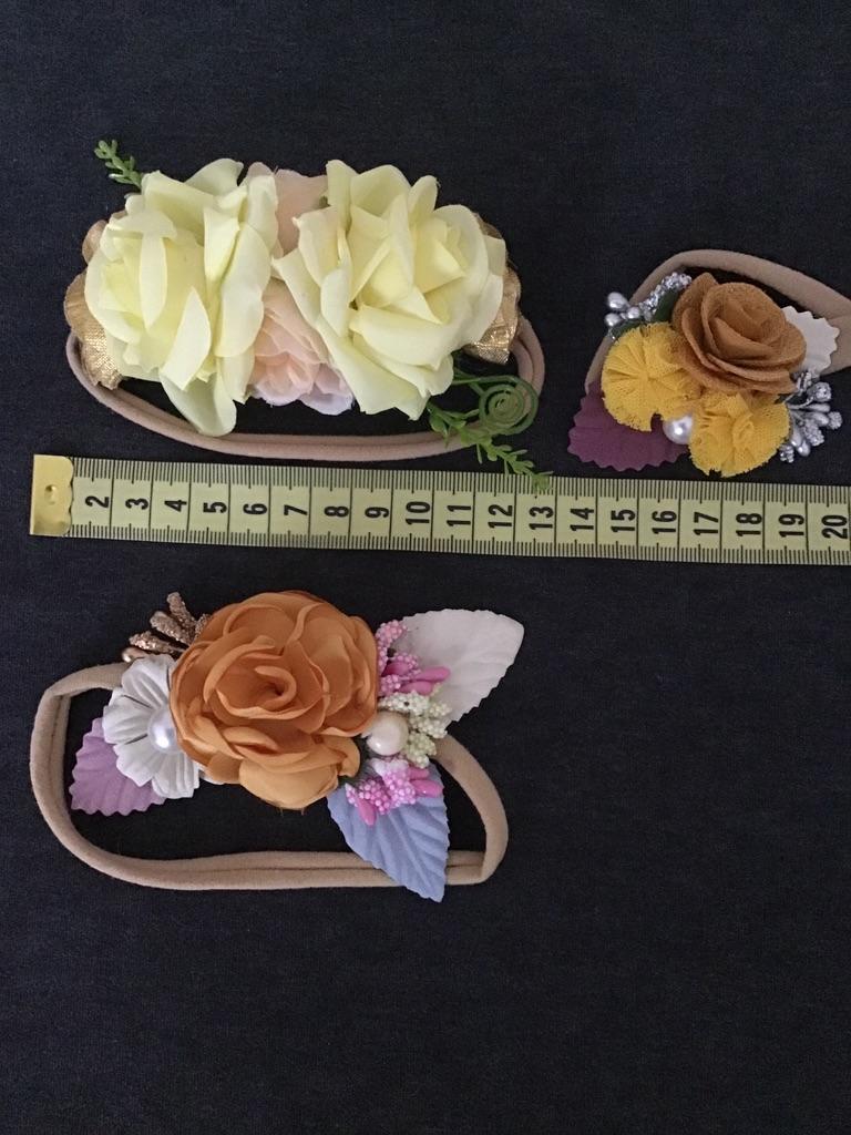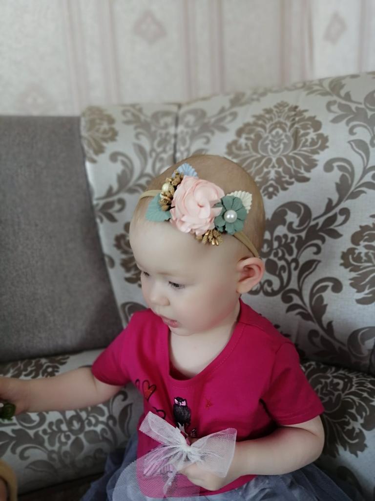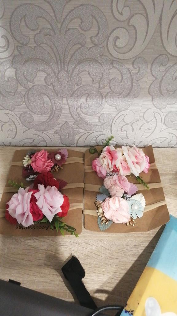 Finally, the bands on a pressure-free elastic band. They already fit a newborn. I put on my daughter 2 months (37cm head circumference) and they will be used for a long time. I don't like the third headband at all, of the two big roses. In my opinion, it will look better without green additives. The other two are lovely. Delicate and cute.
