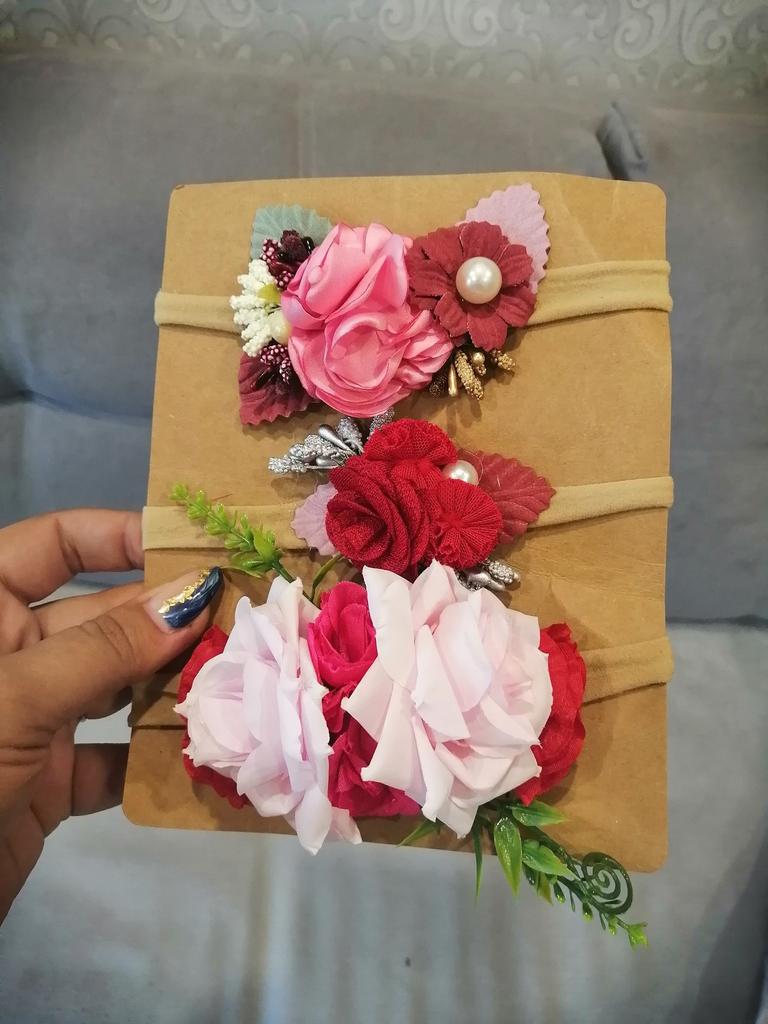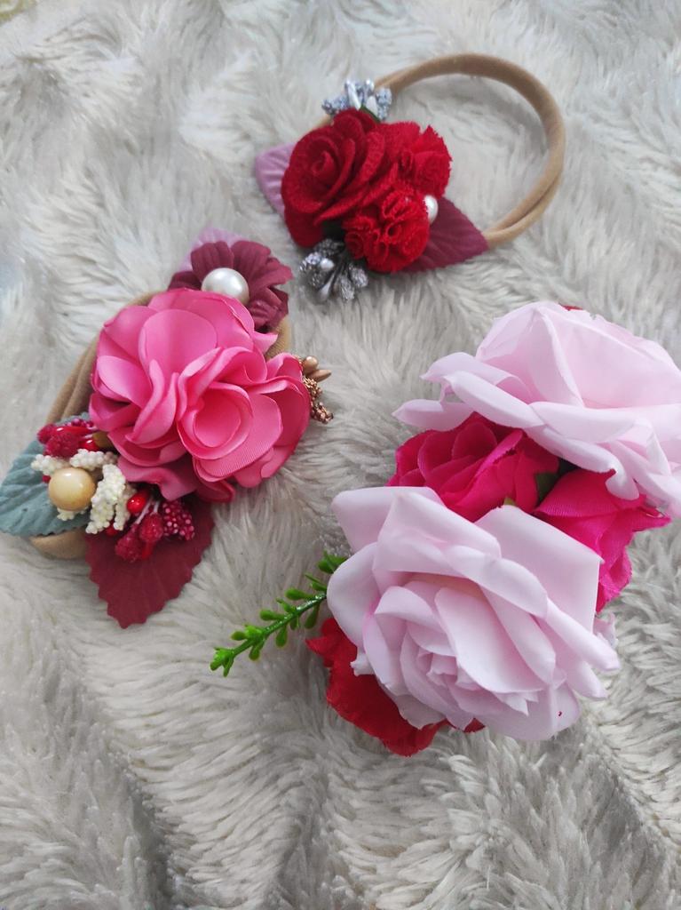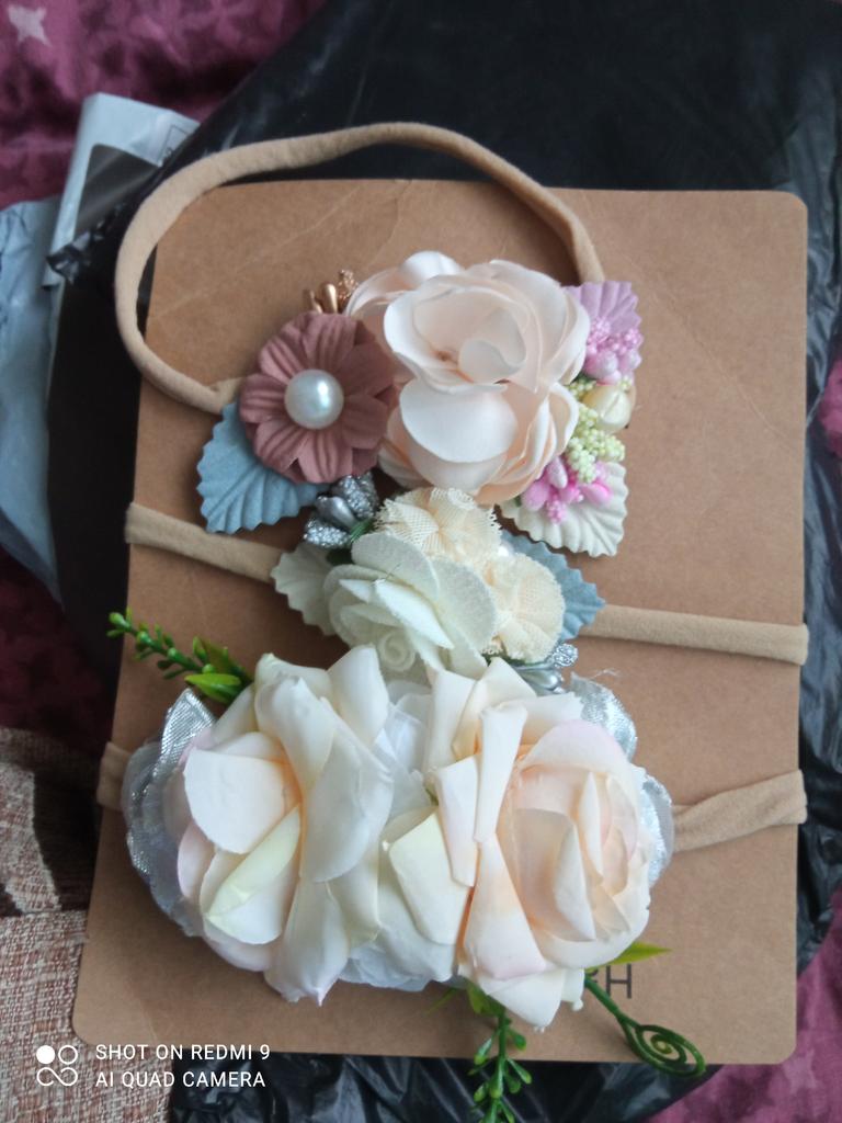 I give 3 stars because one of the bands (with 2 red roses) is really ugly, they are artificial flowers.. the other 2 are prettier, but they are made with flowers that are hard and I don't think they are suitable for a hair band, especially for children..