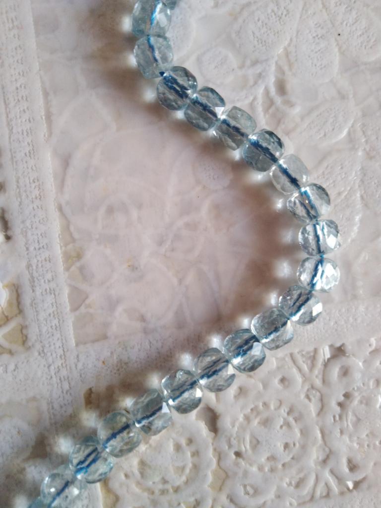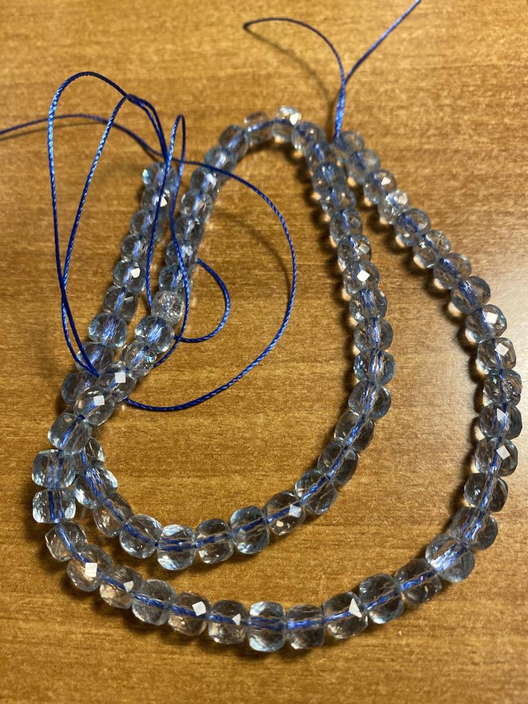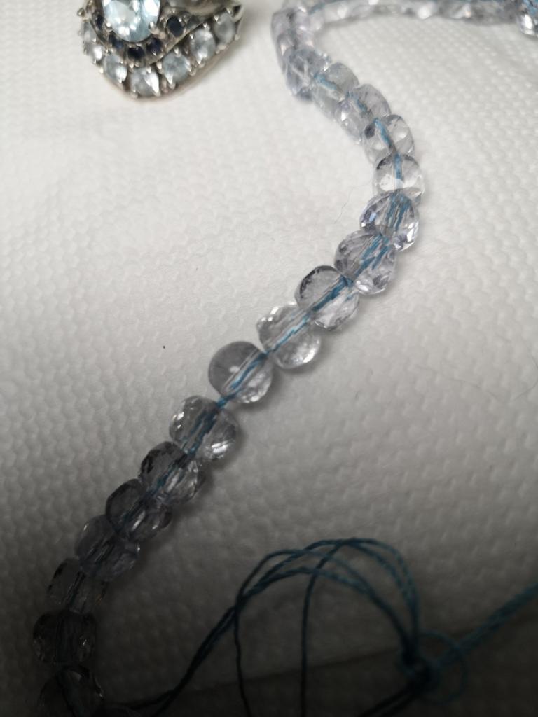 The color of the beads does not match the photo. Not blue. Good if it's topaz.