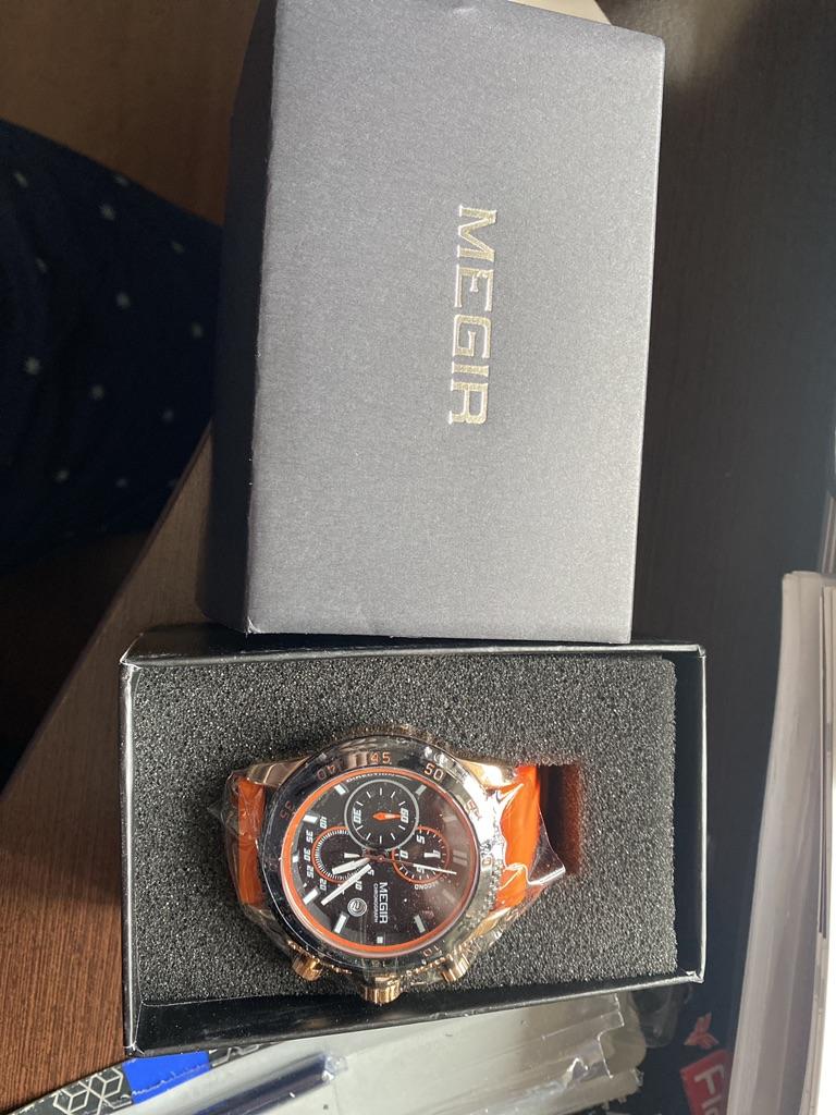 Megir Casual Watches Fashion Men Quartz Wristwatches Leather Strap Waterproof Luminous Man Watch Chronograph 2028