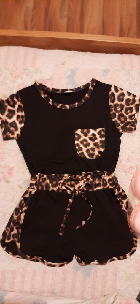 Toddler Kids Baby Girl Summer Outfits Short Sleeve T Shirt Top Leopard Shorts Pants Clothes Set